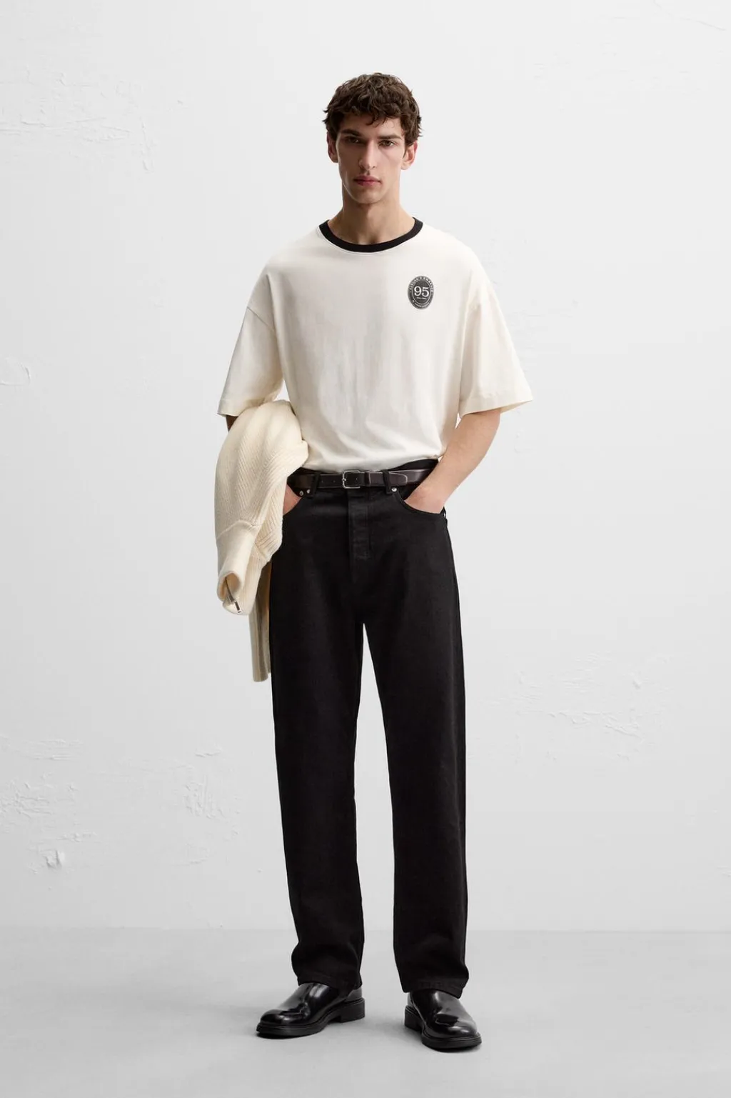 Camiseta relaxed fit. Cuello redondo y manga corta. Estampaciones combinadas a contraste en delantero y espalda.
