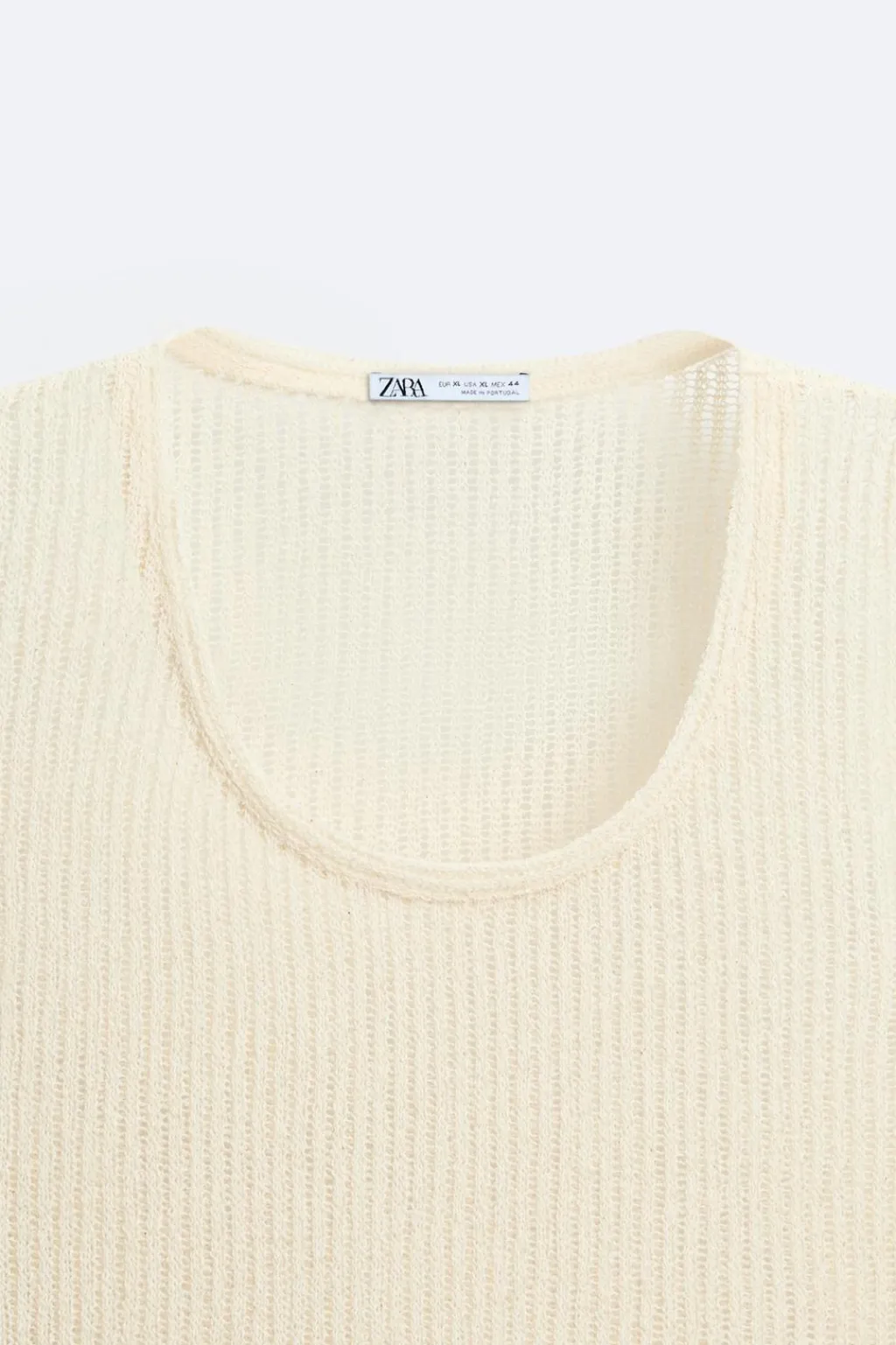 Camiseta relaxed fit confeccionada en tejido con estructura abierta. Cuello amplio y manga sisa.