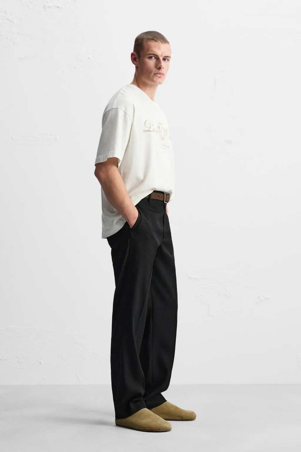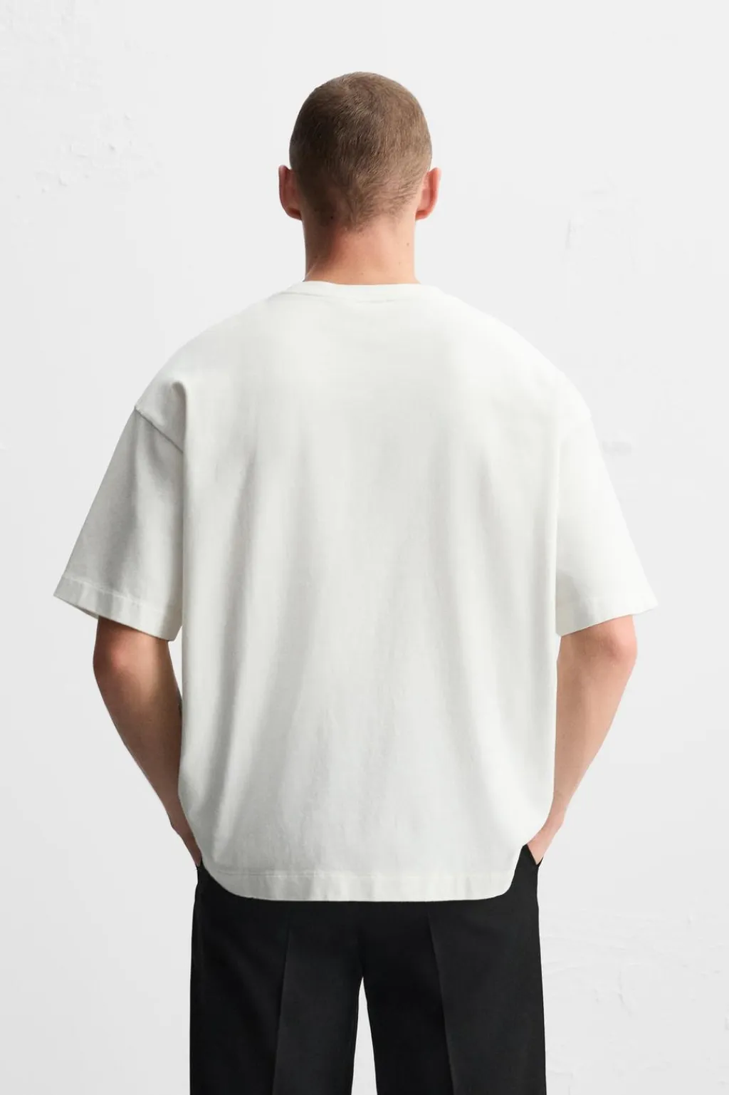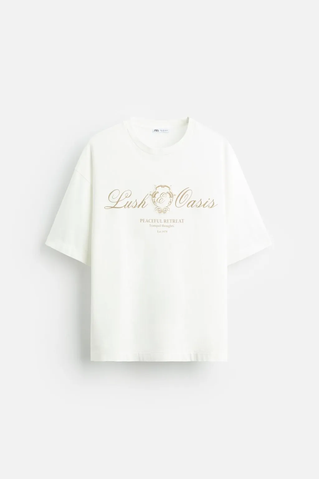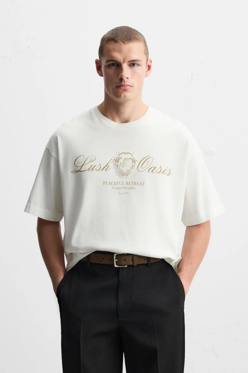 Camiseta relaxed fit con cuello redondo y manga corta. Parche y estampado combinados a contraste en delantero.