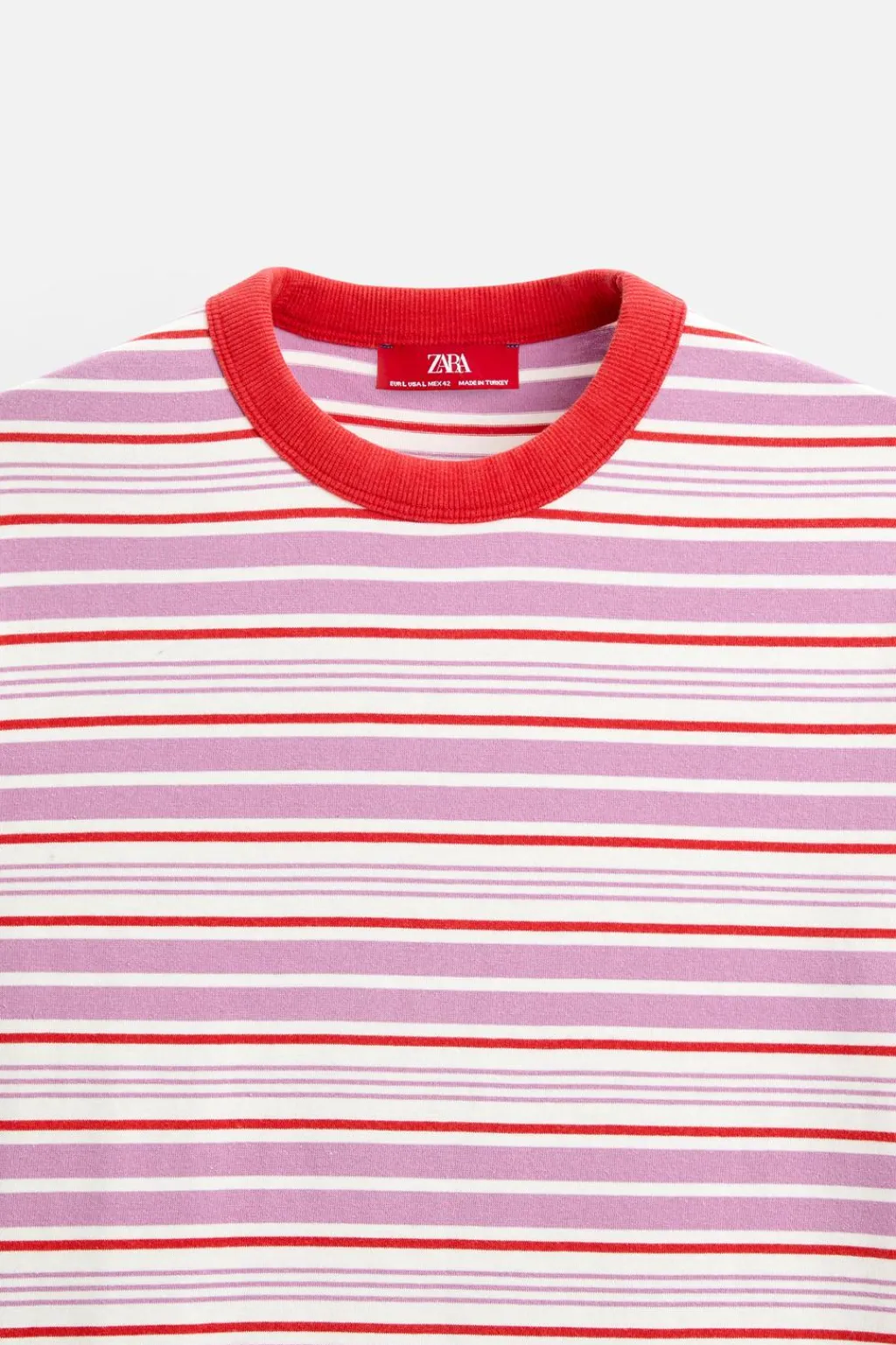 Camiseta cropped fit. Cuello redondo y manga larga. Efecto ligeramente lavado. Acabados en rib combinado a contraste.