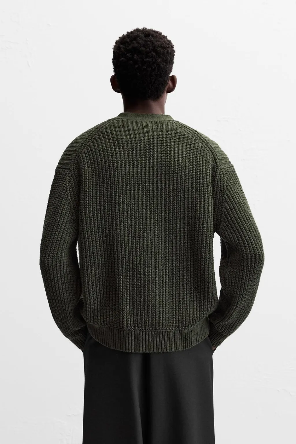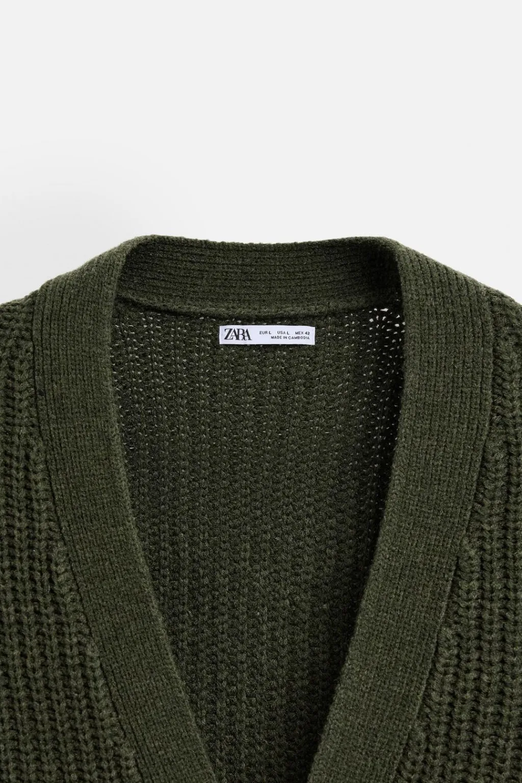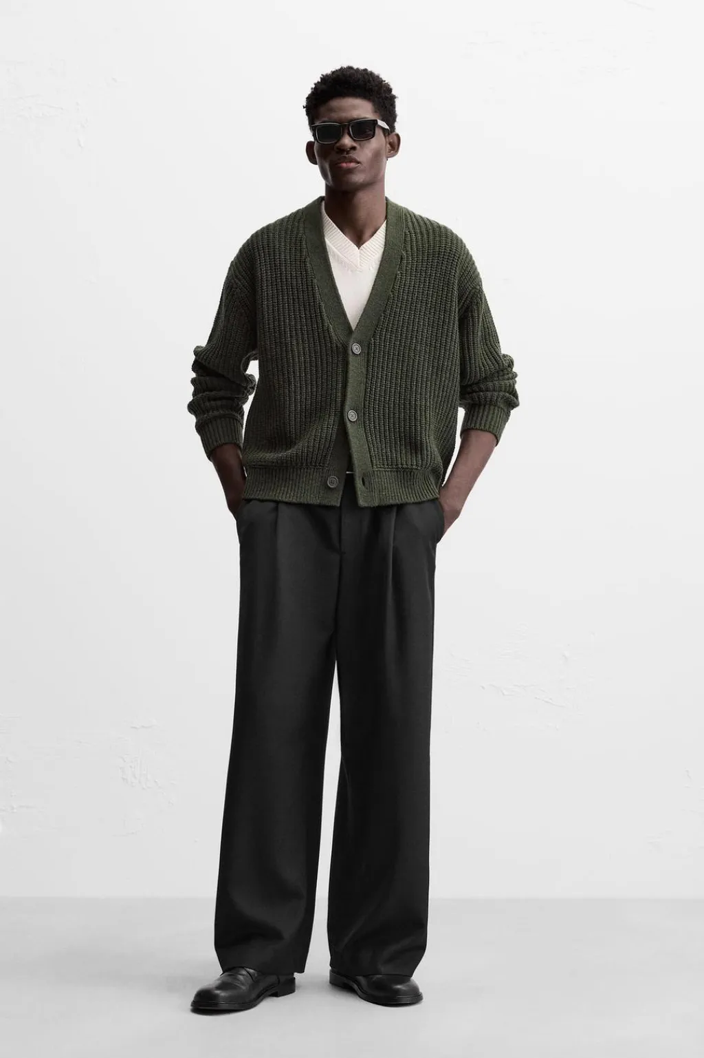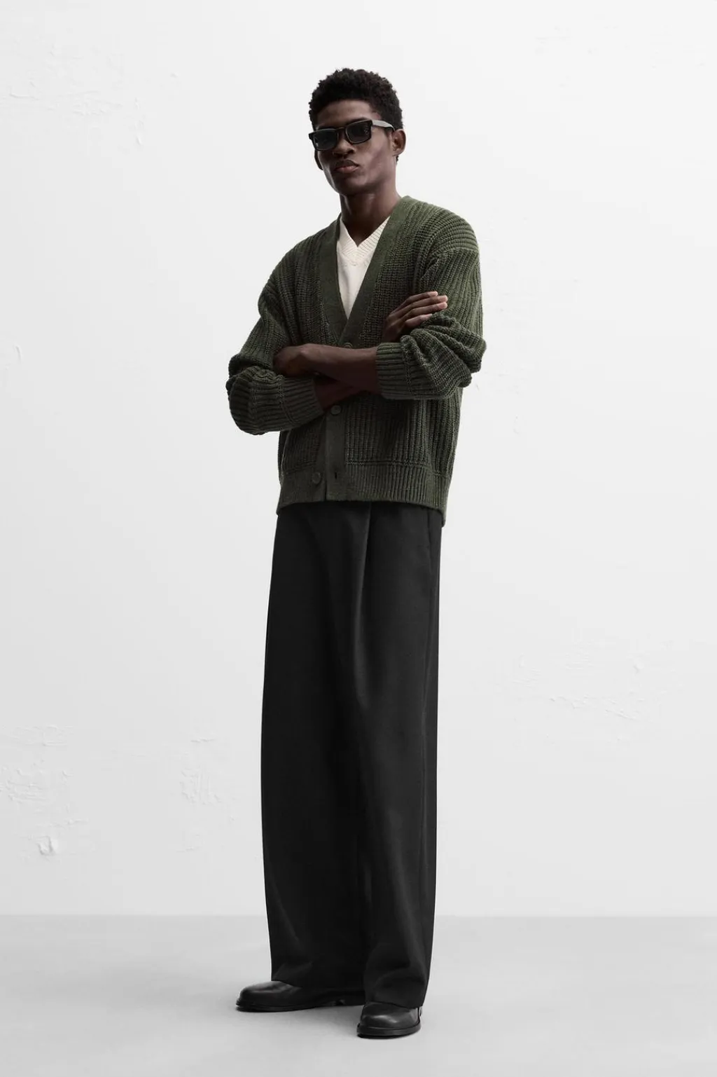 Cárdigan relaxed fit tejido en hilatura con estructura. Cuello pico y manga larga. Acabados en rib. Cierre frontal de botonadura.