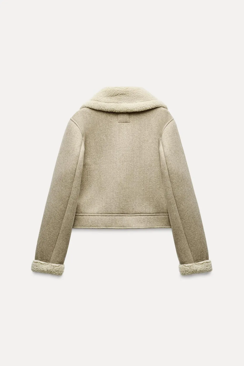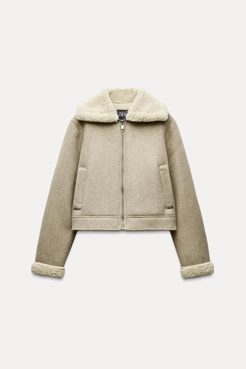 Cazadora de cuello solapa y manga larga. Bolsillos delanteros de vivo. Detalle de tejido interior combinado en borreguillo. Cierre frontal con cremallera.