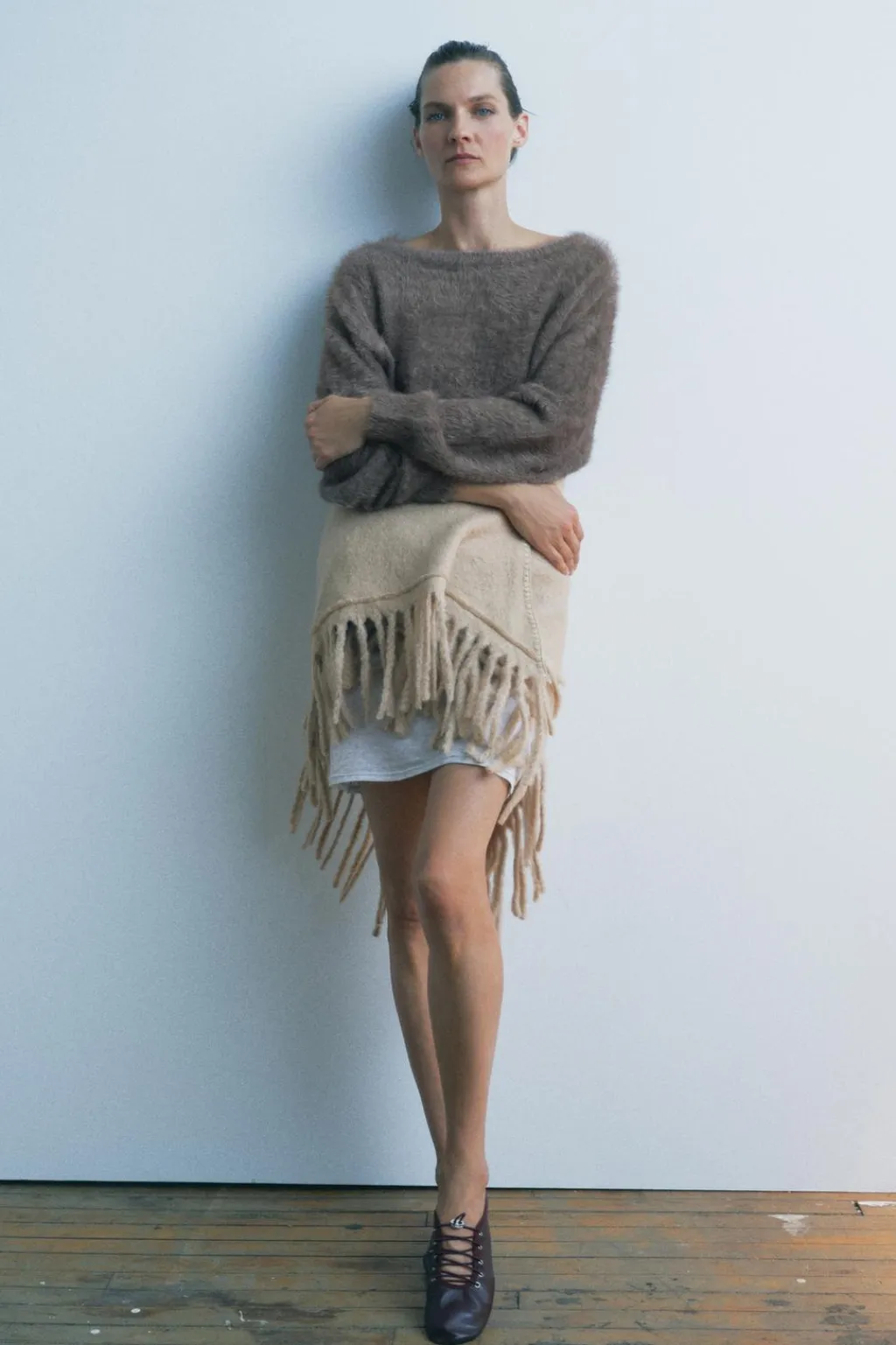 Chal confeccionado con lana. Acabado en flecos.
