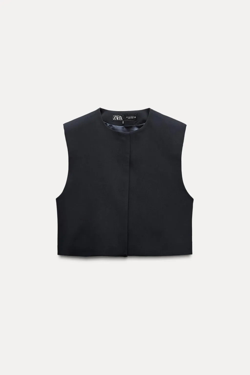 Chaleco de cuello redondo y manga sisa con hombreras. Cierre frontal con botones a presión.