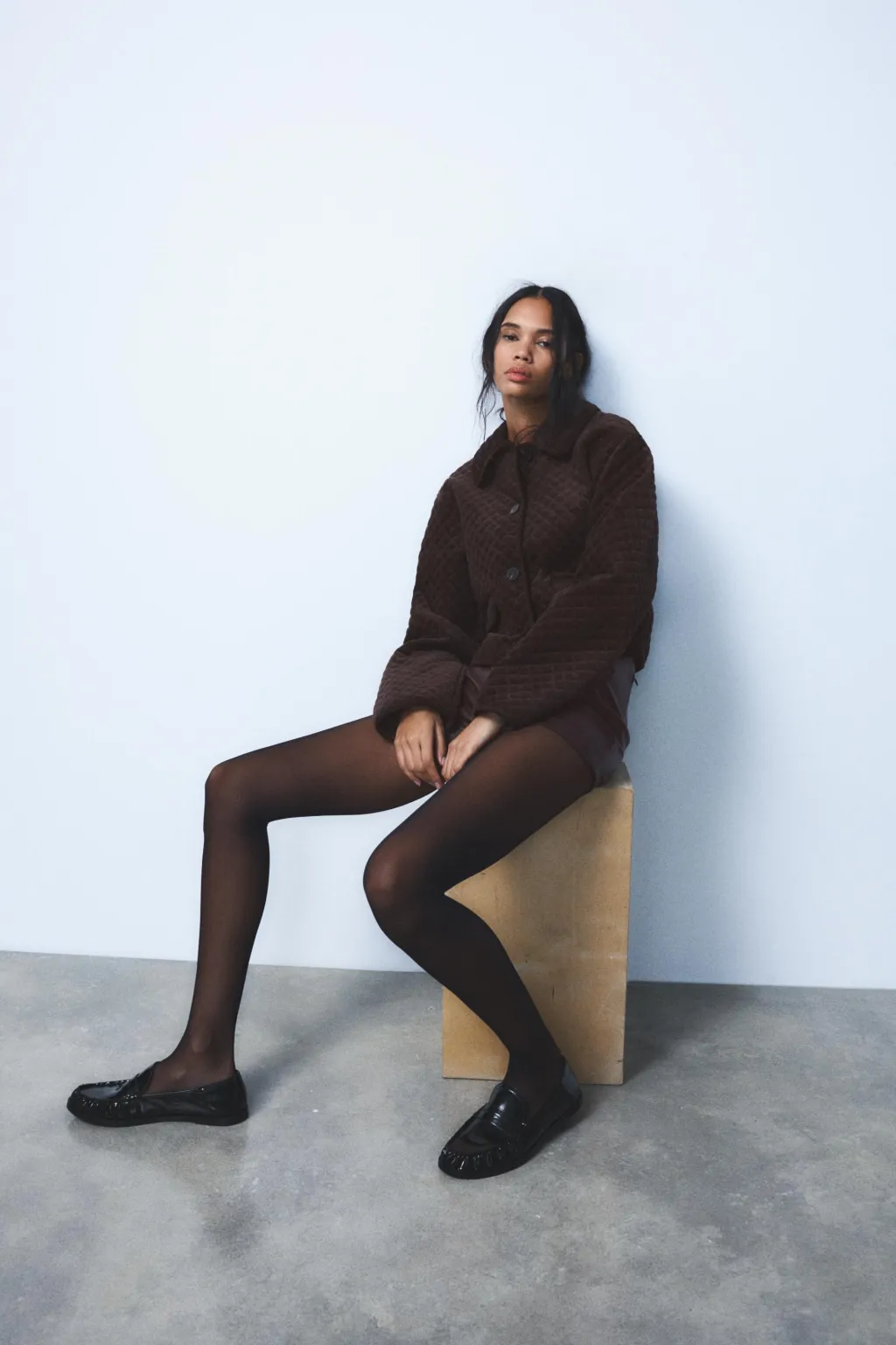 Chaqueta de cuello solapa y manga larga. Bolsillos con solapa en delantero. Cierre frontal con botones.