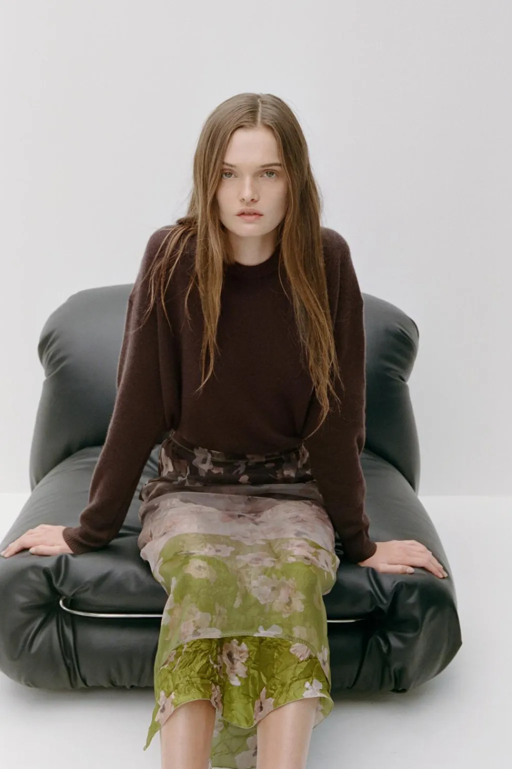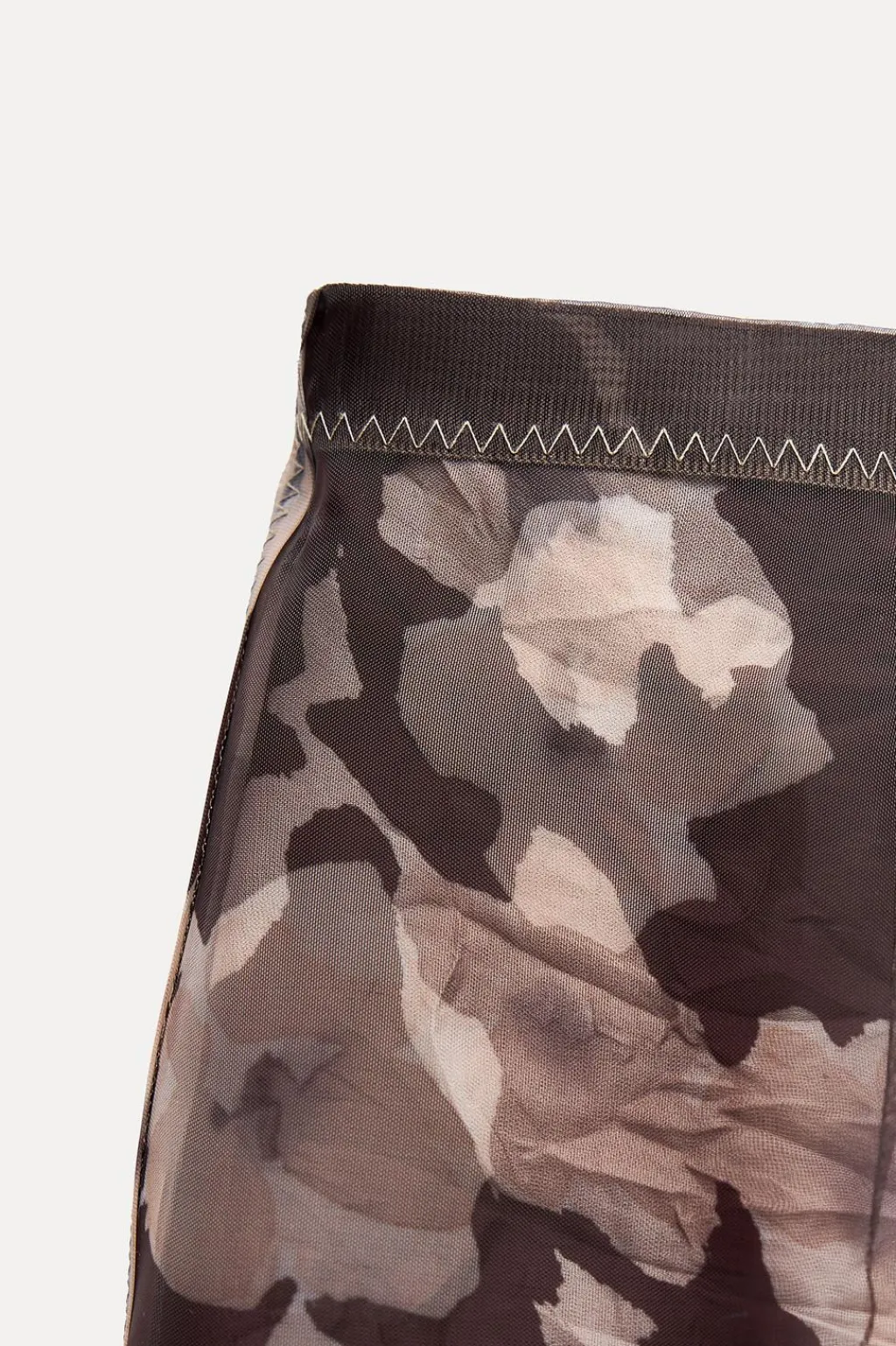 Falda midi de tiro medio confeccionada en tejido tipo organza. Detalle de estampación a contraste. Bajo asimétrico con abertura. Forro interior. Cierre con cremallera oculta en costura.