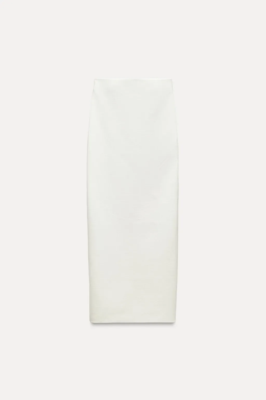Falda larga confeccionada en tejido tipo punto. Tiro medio y cintura con elástico. Bajo acabado en abertura.