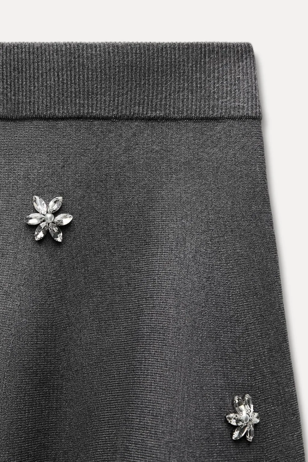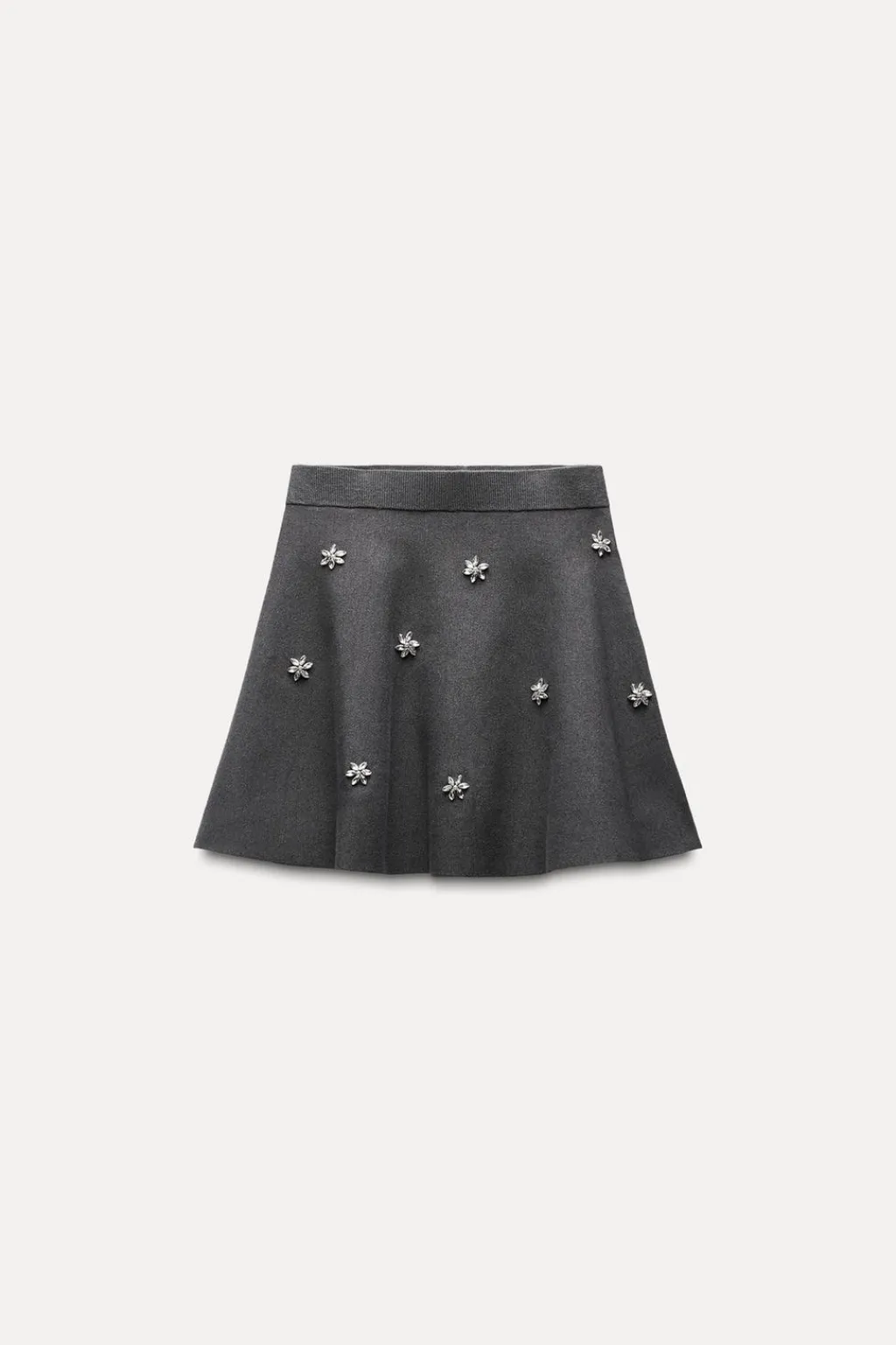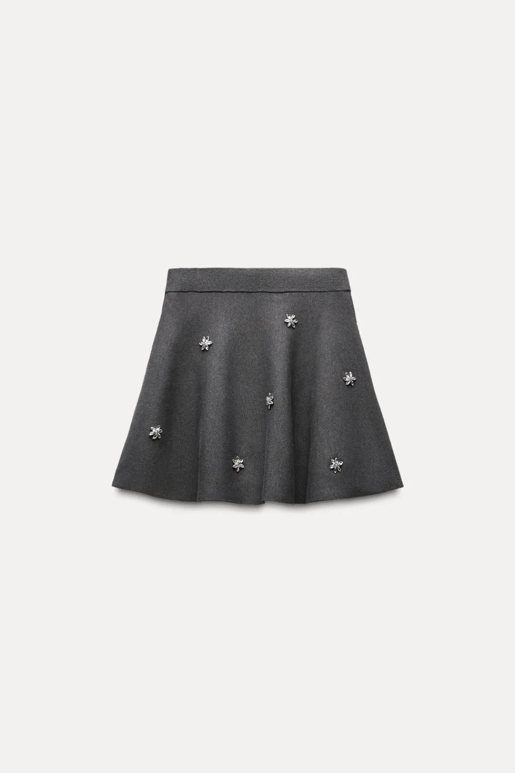 Falda con cintura elástica. Detalle de abalorios joya. Bajo en evasé.