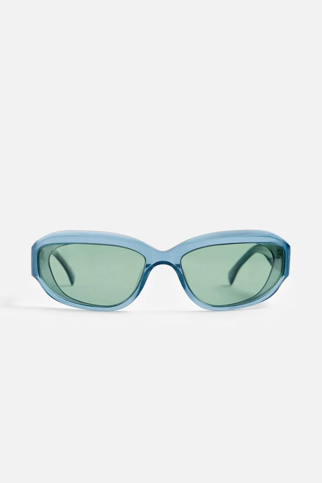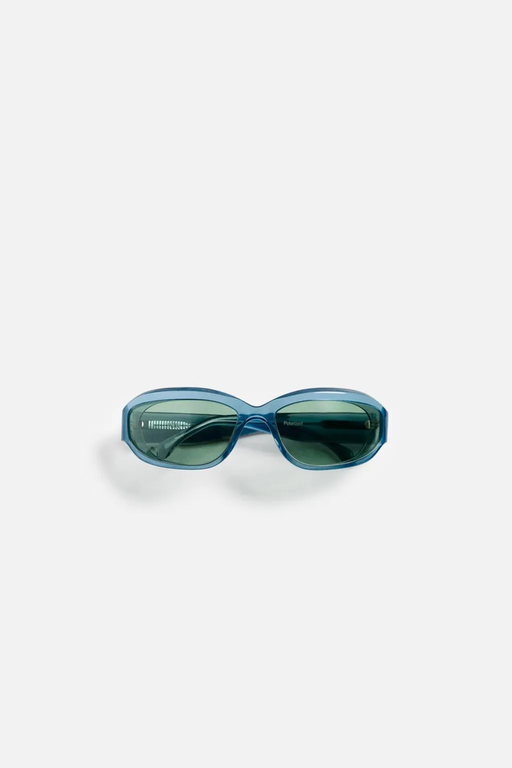 Gafas de sol con montura ovalada en acetato. Lentes polarizadas. Incluye funda.