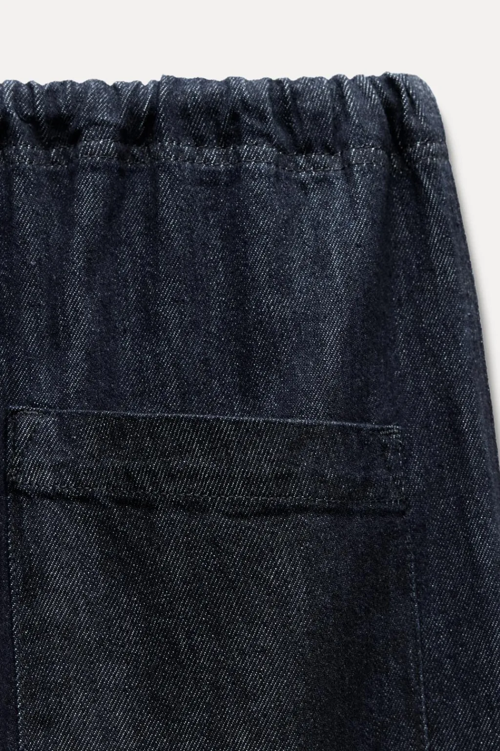 Jeans confeccionado en hilatura de algodón 100 % con tiro medio. Cintura ajustable con cordones. Bolsillos laterales y de plastrón en espalda. Cierre frontal con botones.