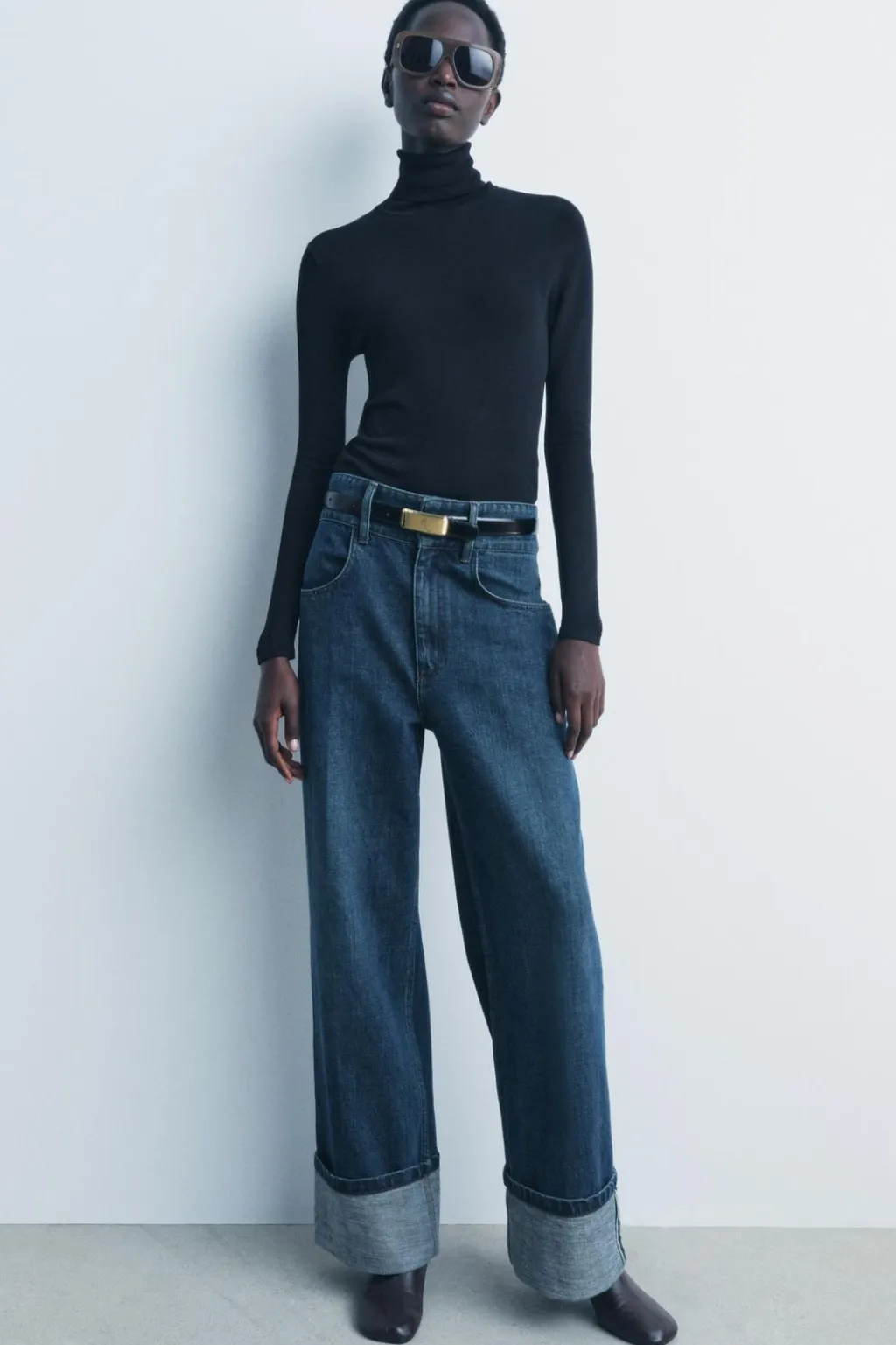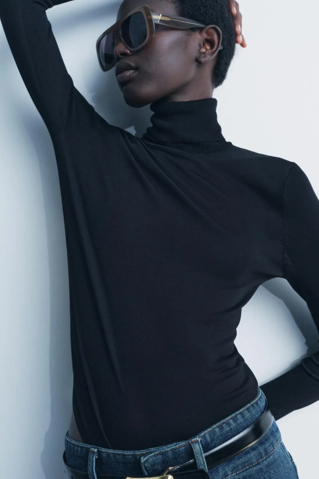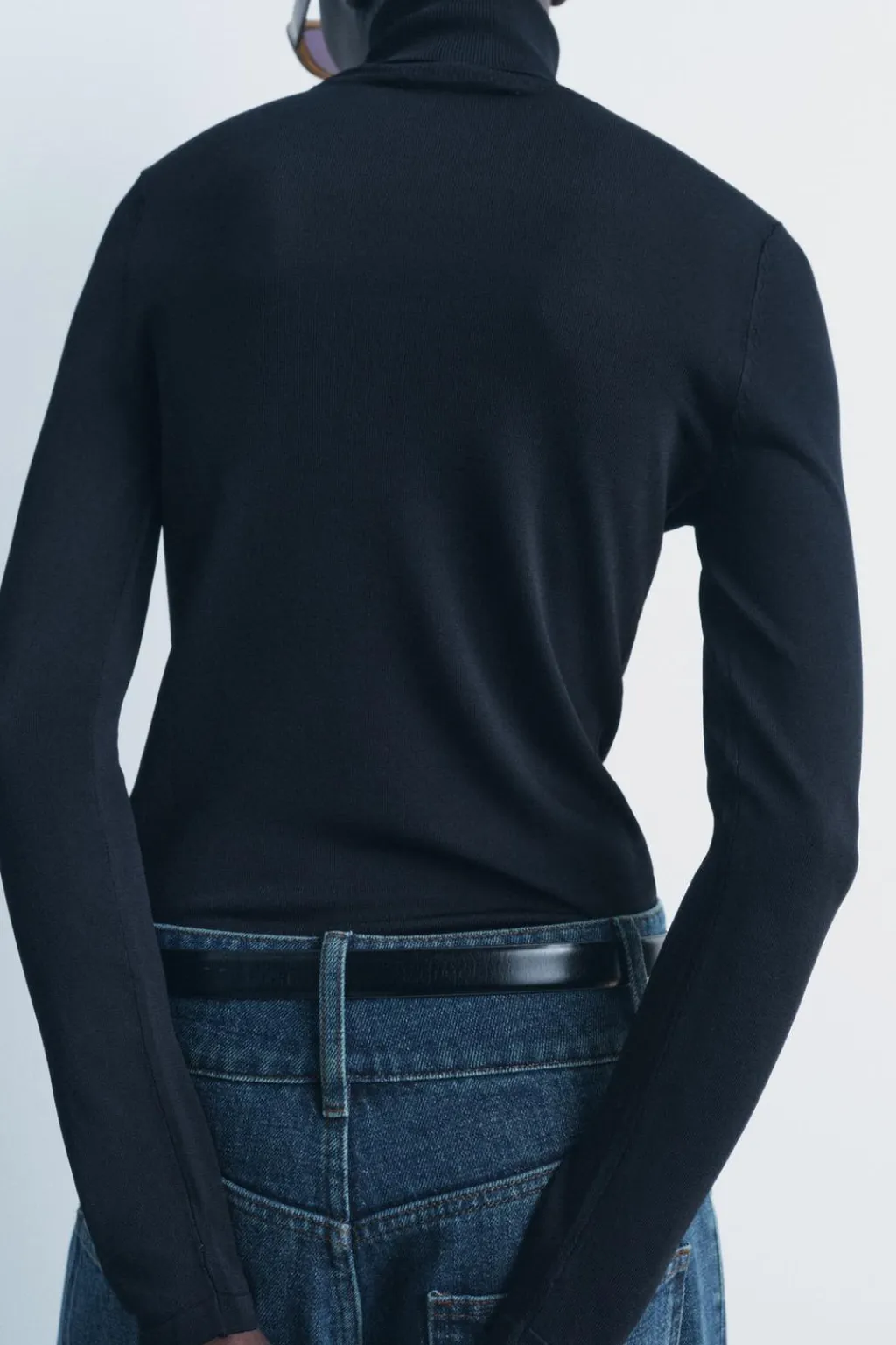 Jersey de punto liso con cuello subido y manga larga.