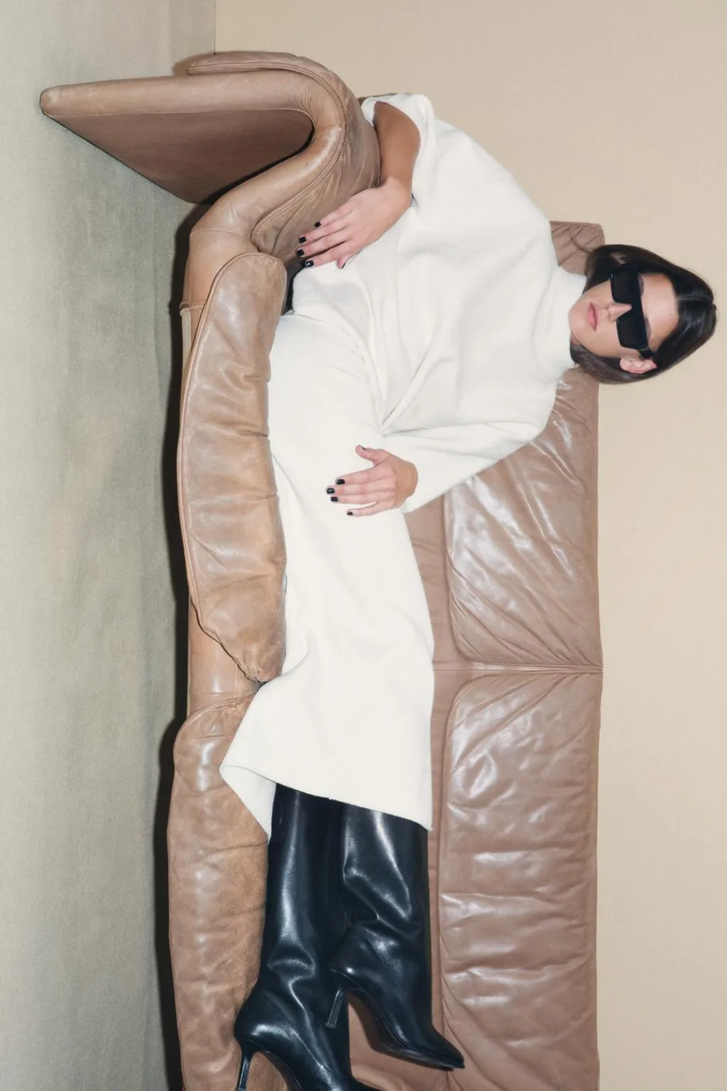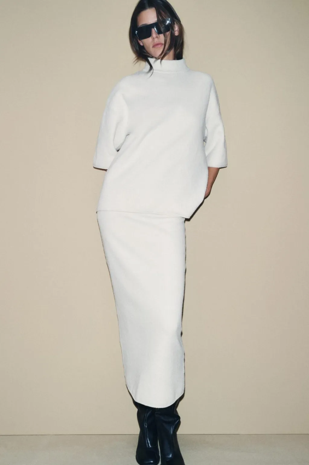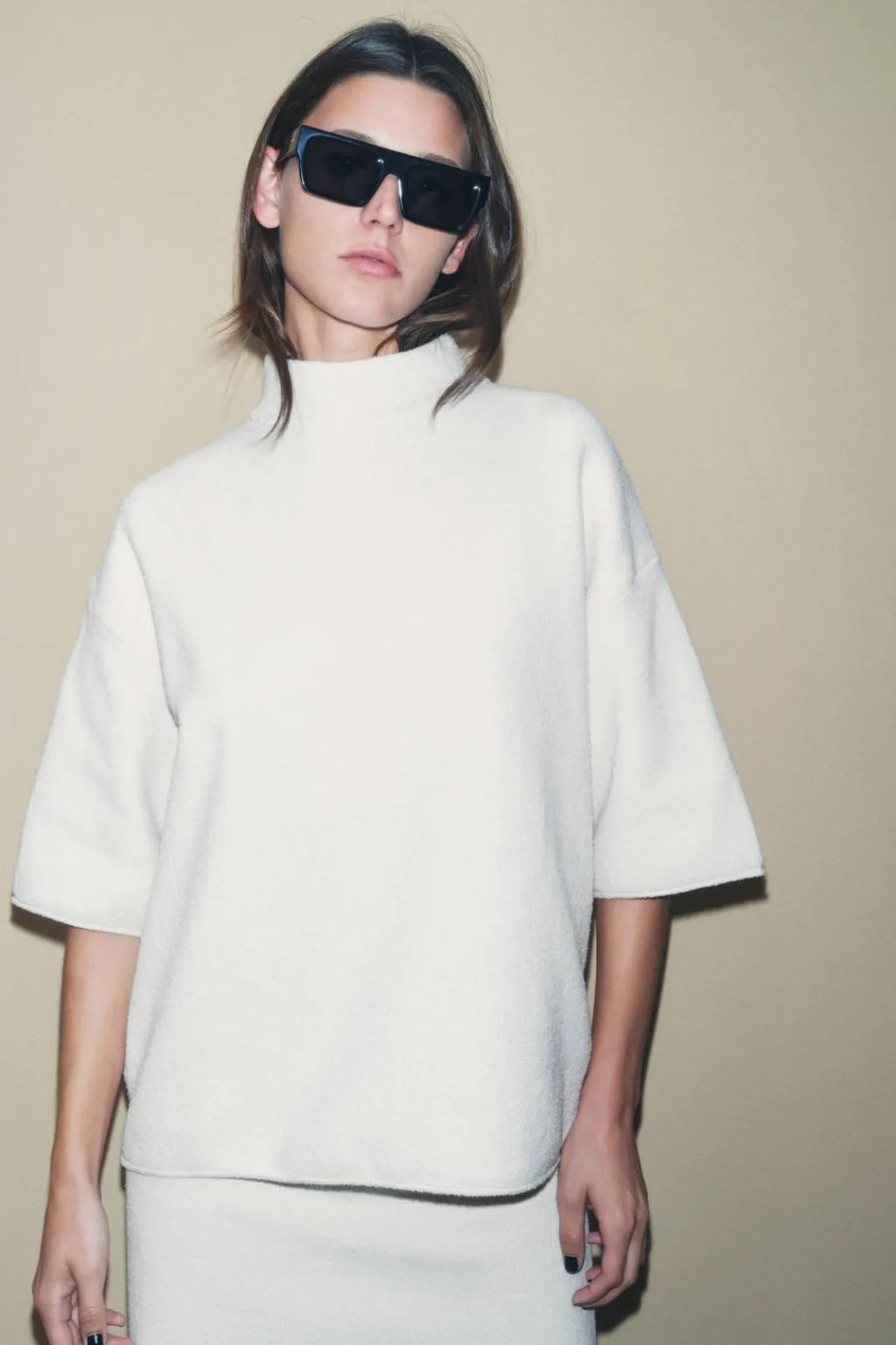 Jersey amplio de cuello subido y manga corta ancha.