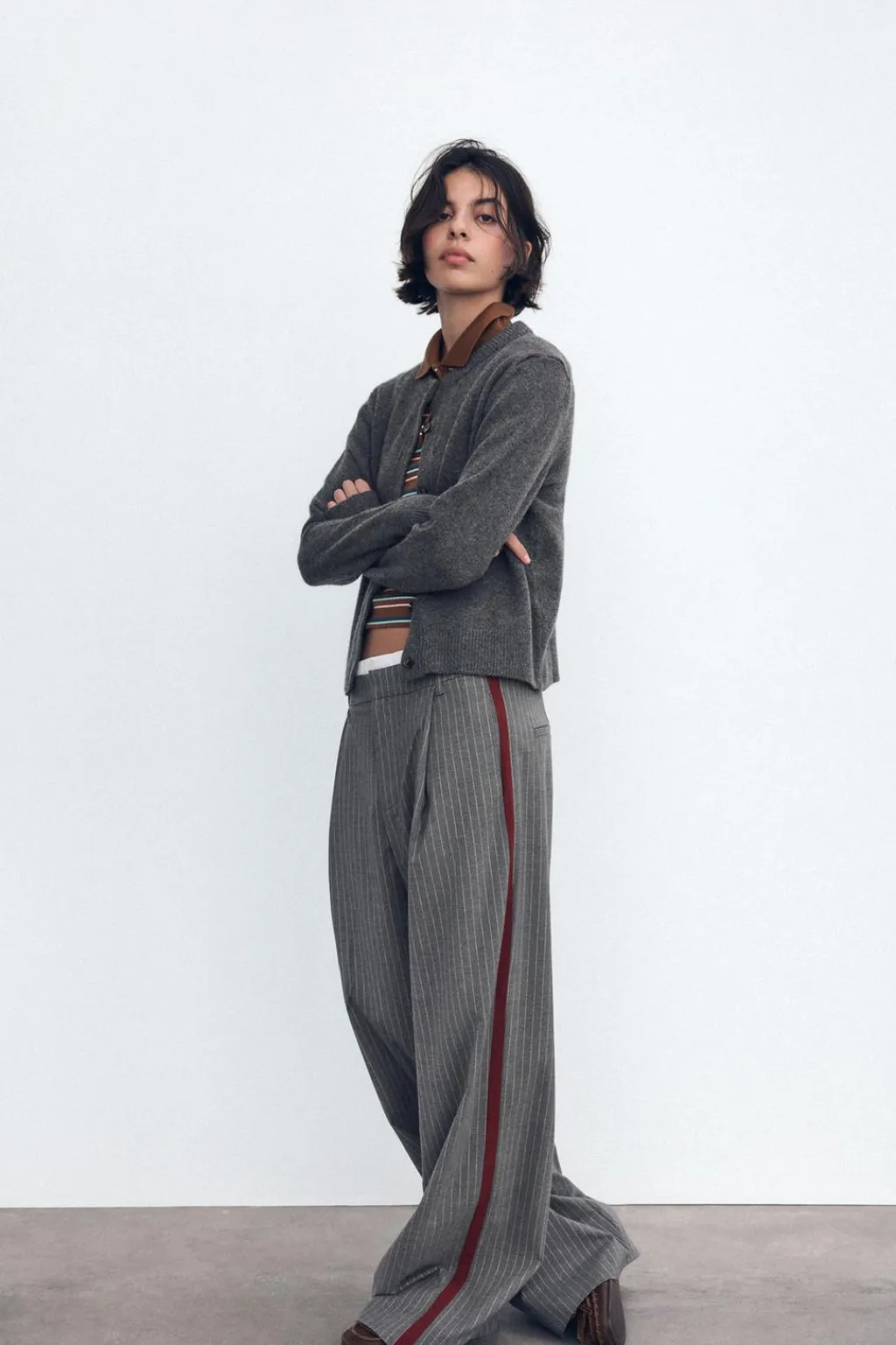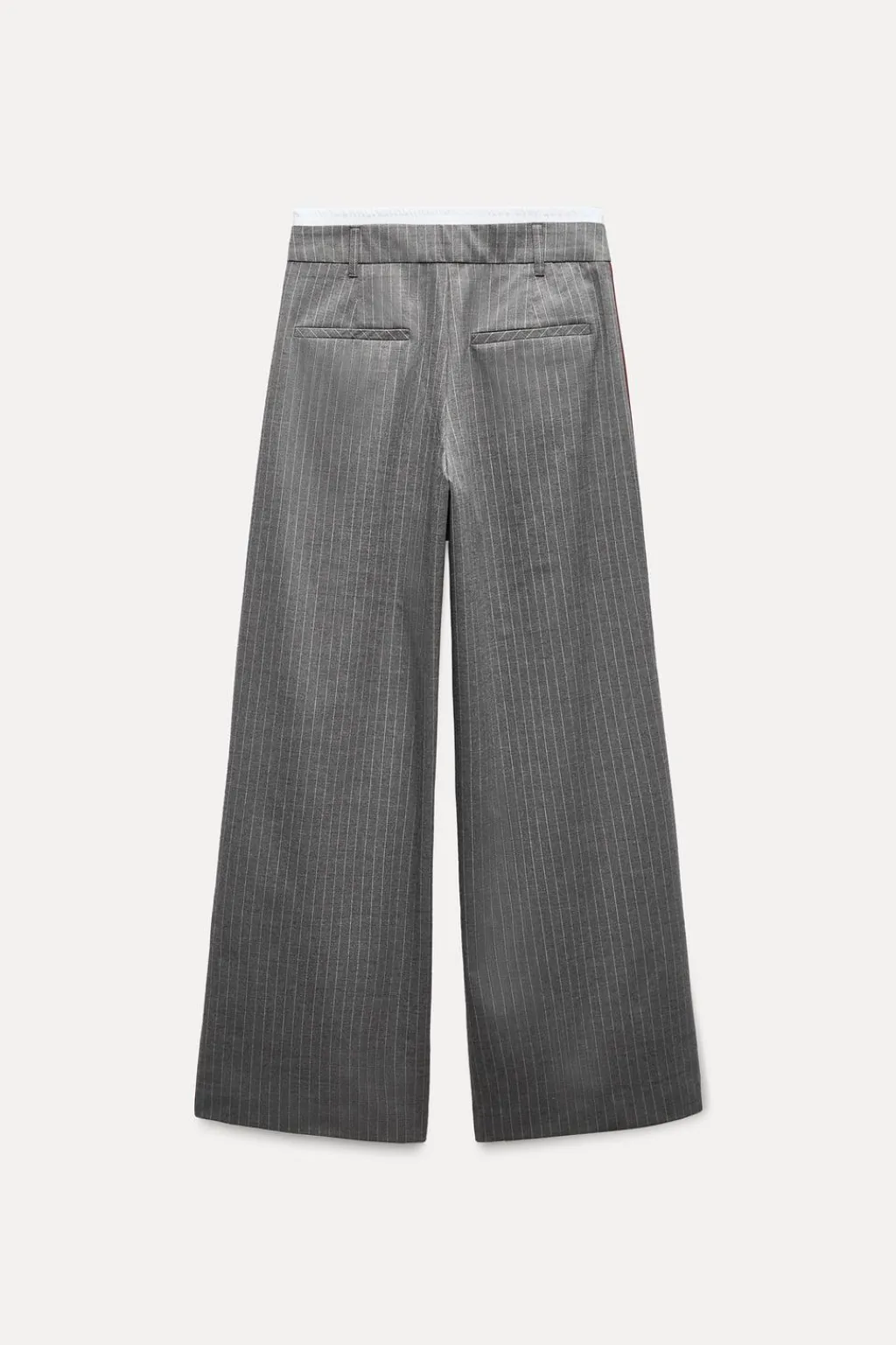 Pantalón de tiro medio con cintura elástica efecto boxer a contraste. Bolsillos laterales y falsos bolsillos de vivo en espalda. Pierna recta ancha. Banda lateral combinada a contraste. Cierre frontal con cremallera y ganchos metálicos.