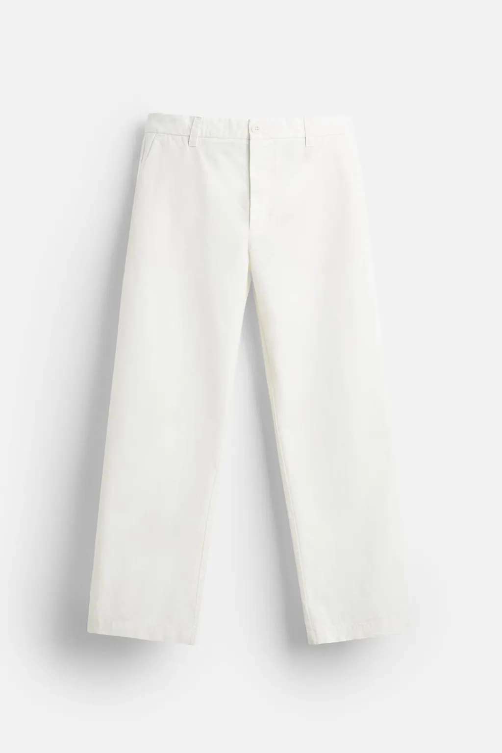 Pantalón straight fit confeccionado en tejido con algodón. Bolsillos frontales y detalle de bolsillos traseros de vivo. Cierre frontal con cremallera y botón.