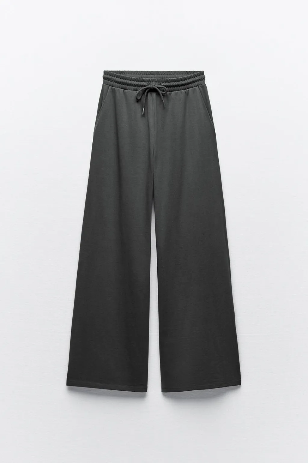 Pantalón confeccionado en hilatura de algodón compacto. Tiro medio y cintura elástica ajustable con cordones. Bolsillos en delantero. Pierna ancha.