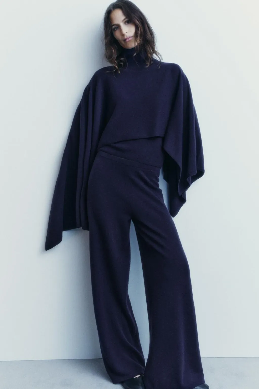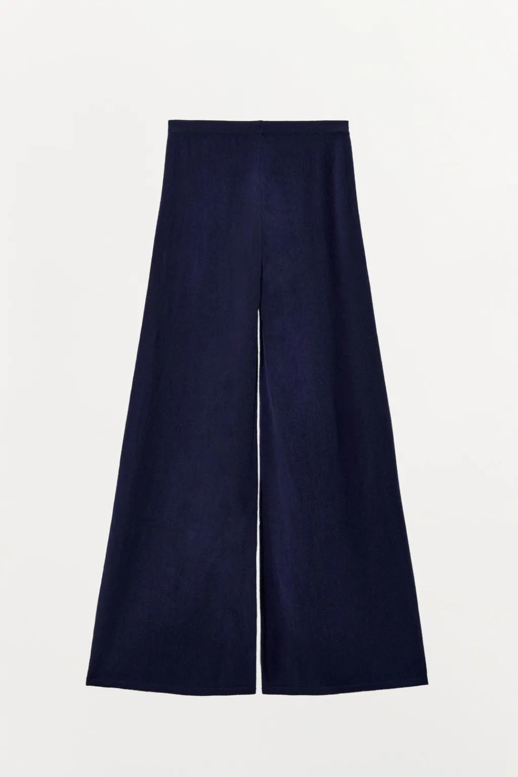 Pantalón confeccionado en mezcla de lana y cashmere 10%. Tiro medio y cintura elástica. Pierna ancha.