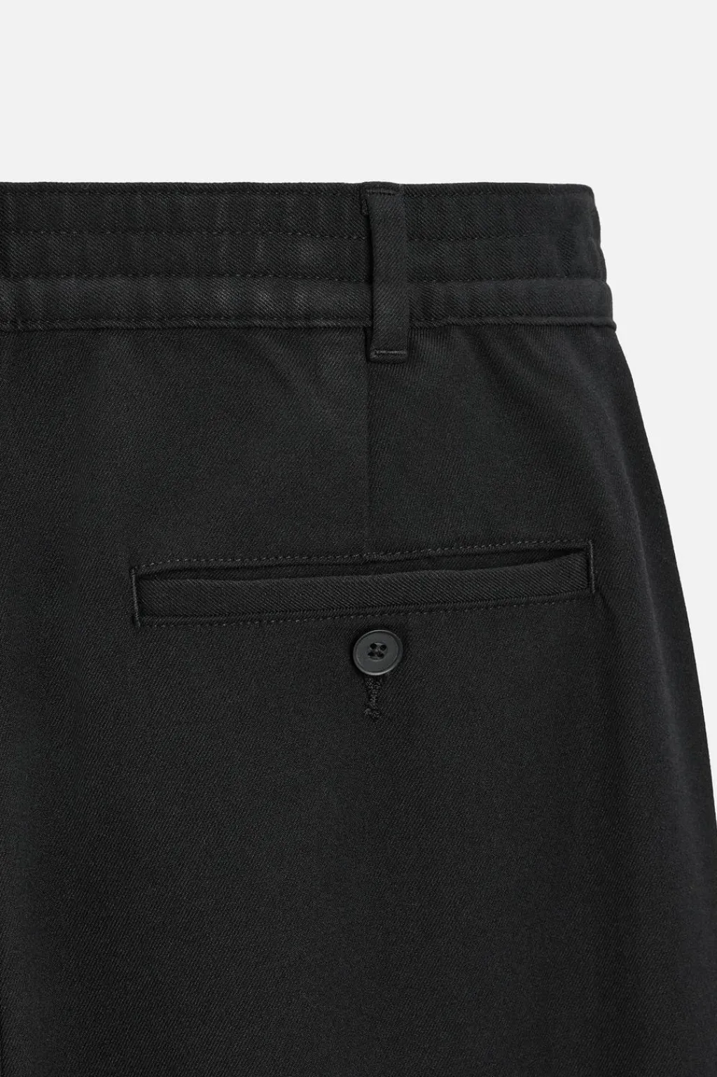 Pantalón relaxed fit confeccionado en tejido con viscosa. Cintura elástica. Bolsillos frontales y detalle de bolsillos traseros de vivo con botón. Cierre frontal con cremallera y botón.