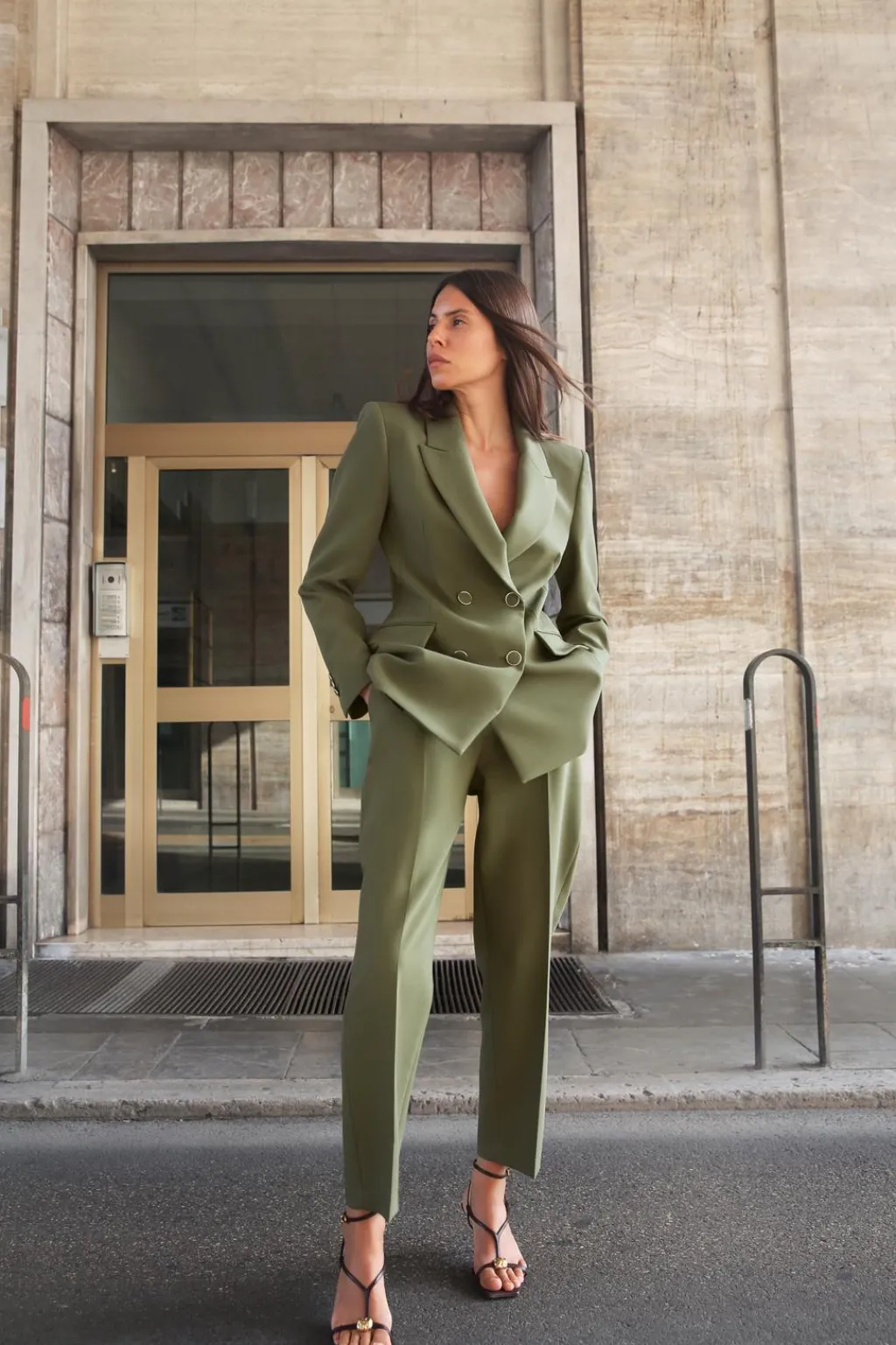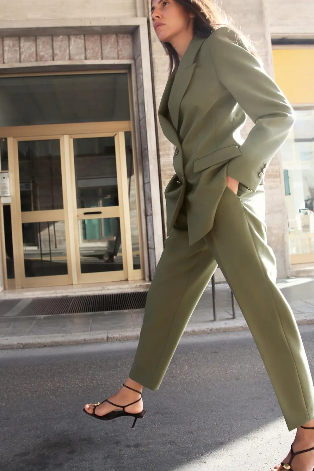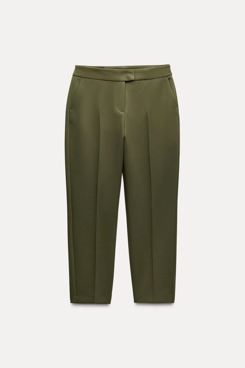 Pantalón de tiro alto con bolsillos delanteros y de vivo en espalda. Cierre frontal con cremallera, botón interior y gancho.