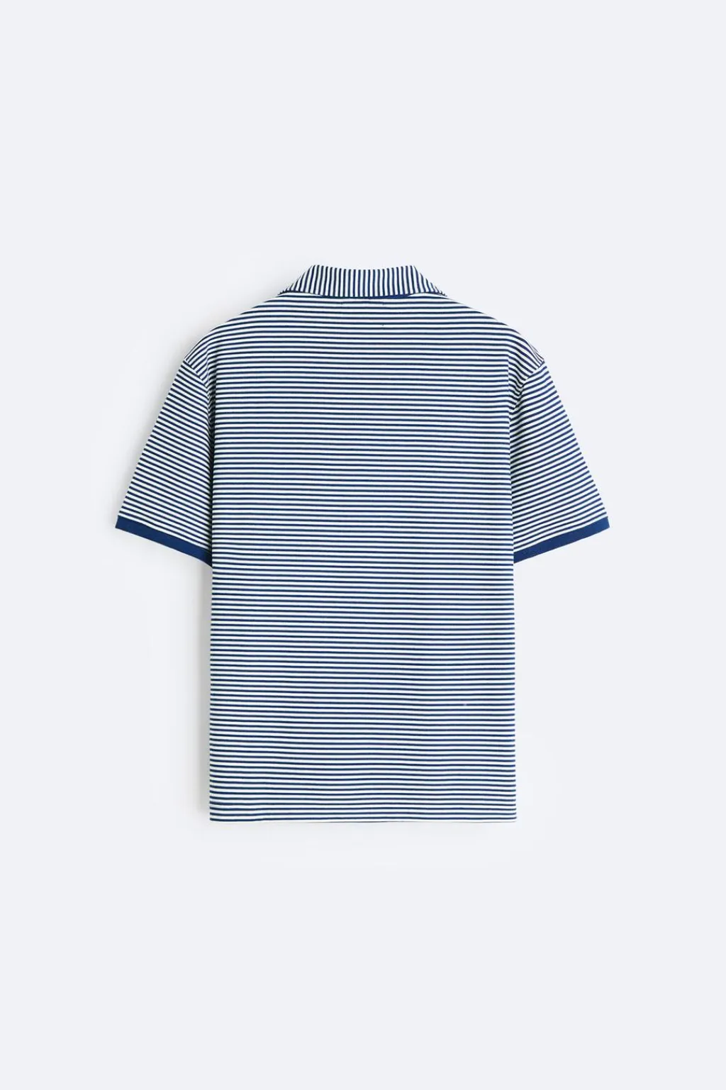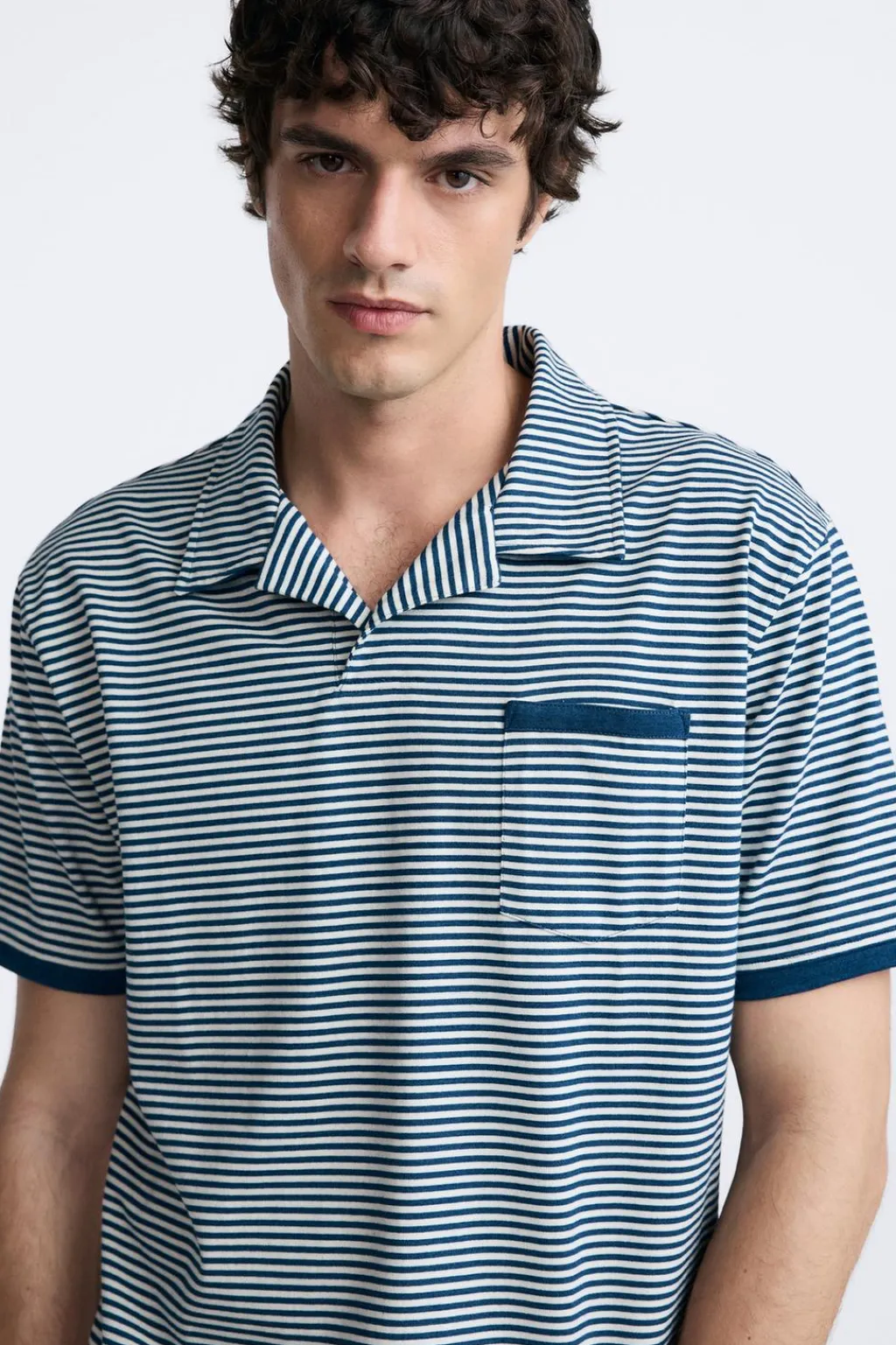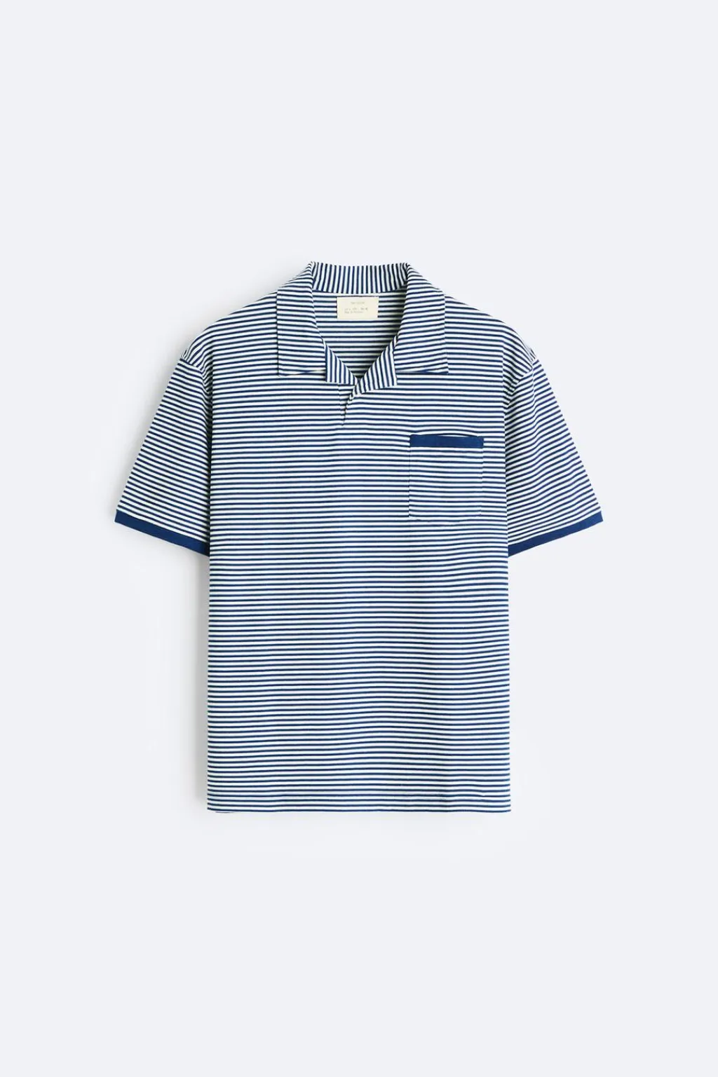 Polo confeccionado en tejido de algodón compacto. Cuello polo con cierre frontal de botonadura oculta. Manga corta acabada en rib combinado a contraste. Bolsillo plastrón en pecho.