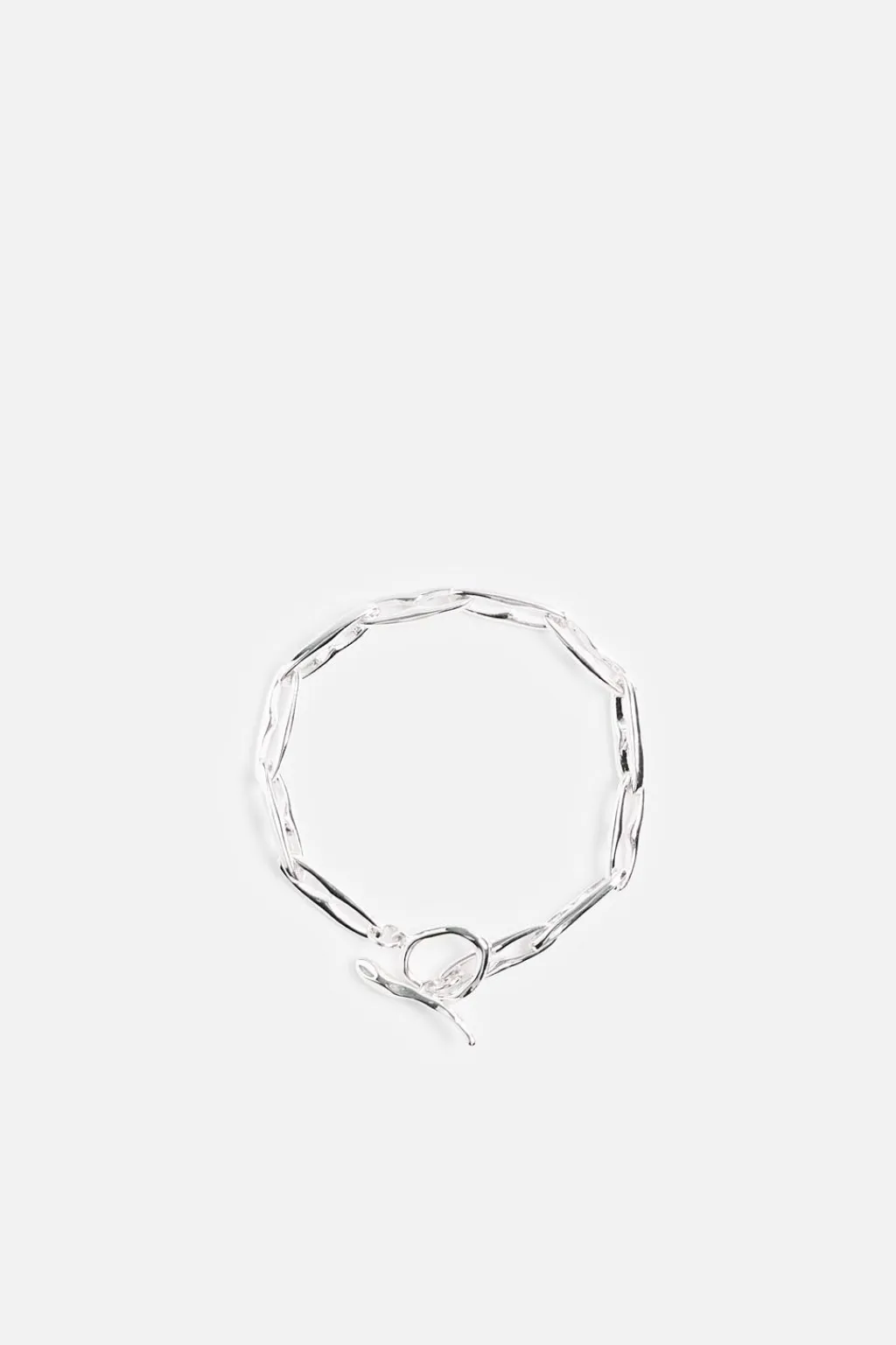 Pulsera compuesta por eslabones metálicos. Acabada con baño de plata 925 MM. Cierre de palanca.