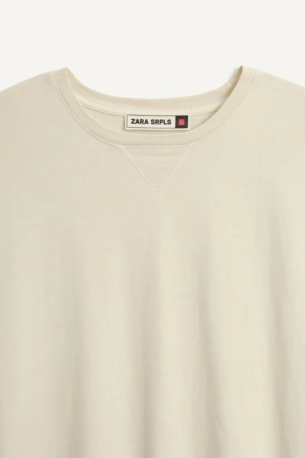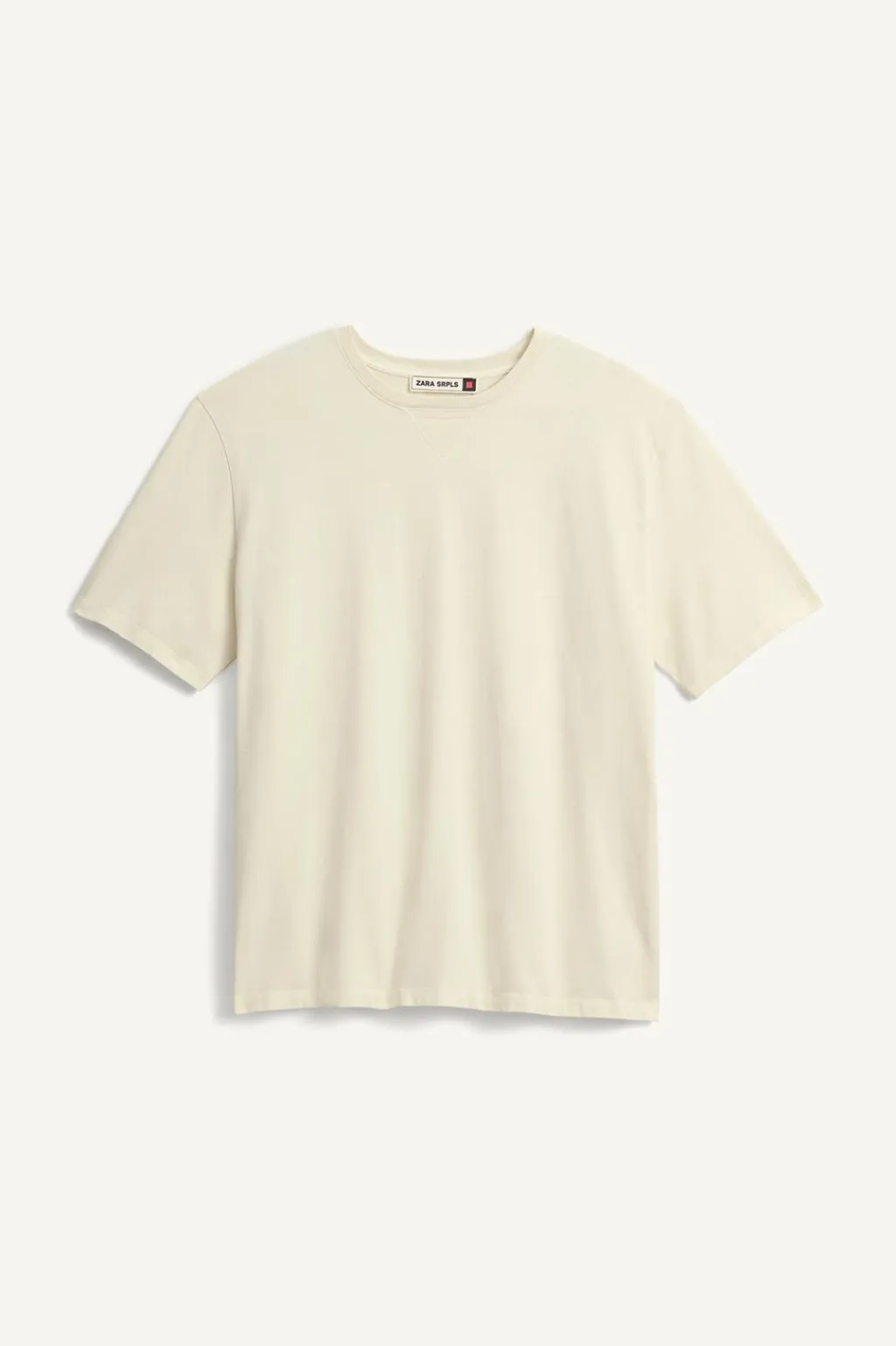 Camiseta relaxed fit confeccionada en algodón compacto. Cuello redondo y manga corta. Detalle de logo bordado en el bajo. Efecto lavado.