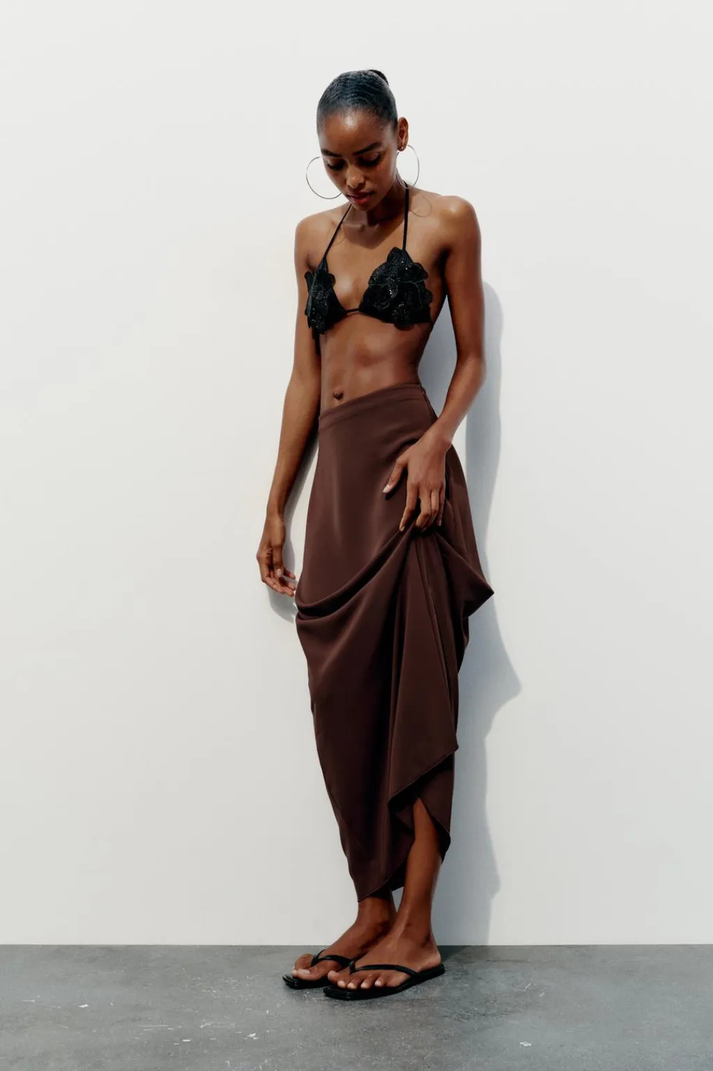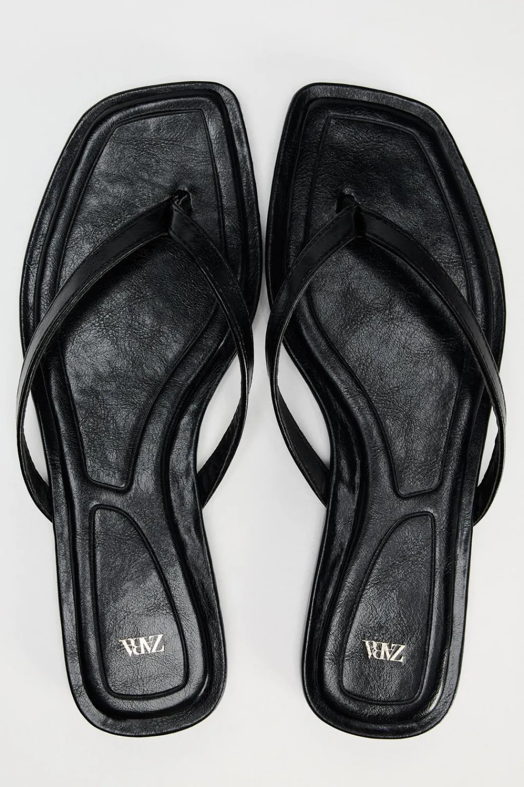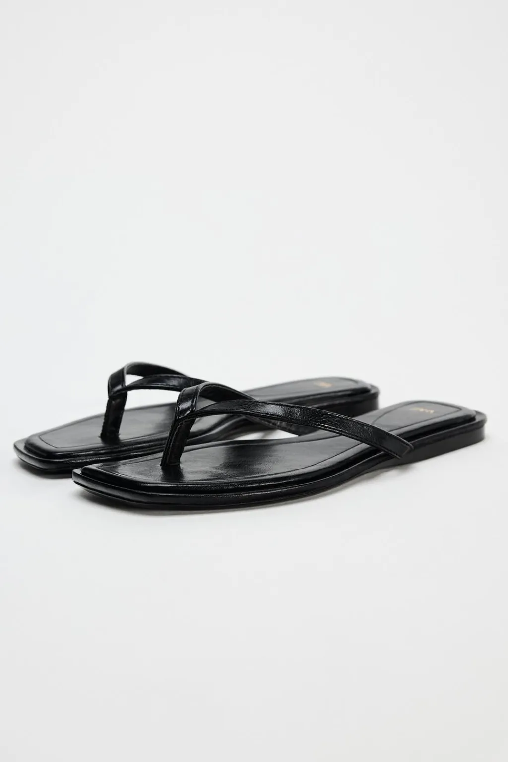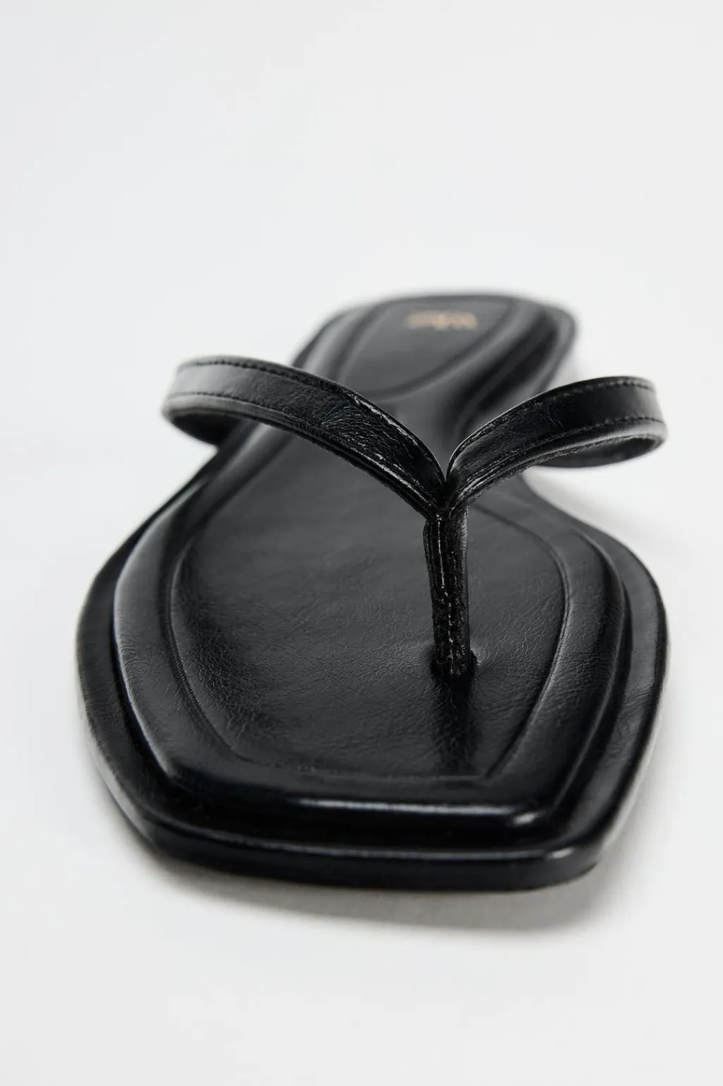 Zapato tipo sandalia plana. Detalle de tiras en la parte delantera con posición para el dedo.