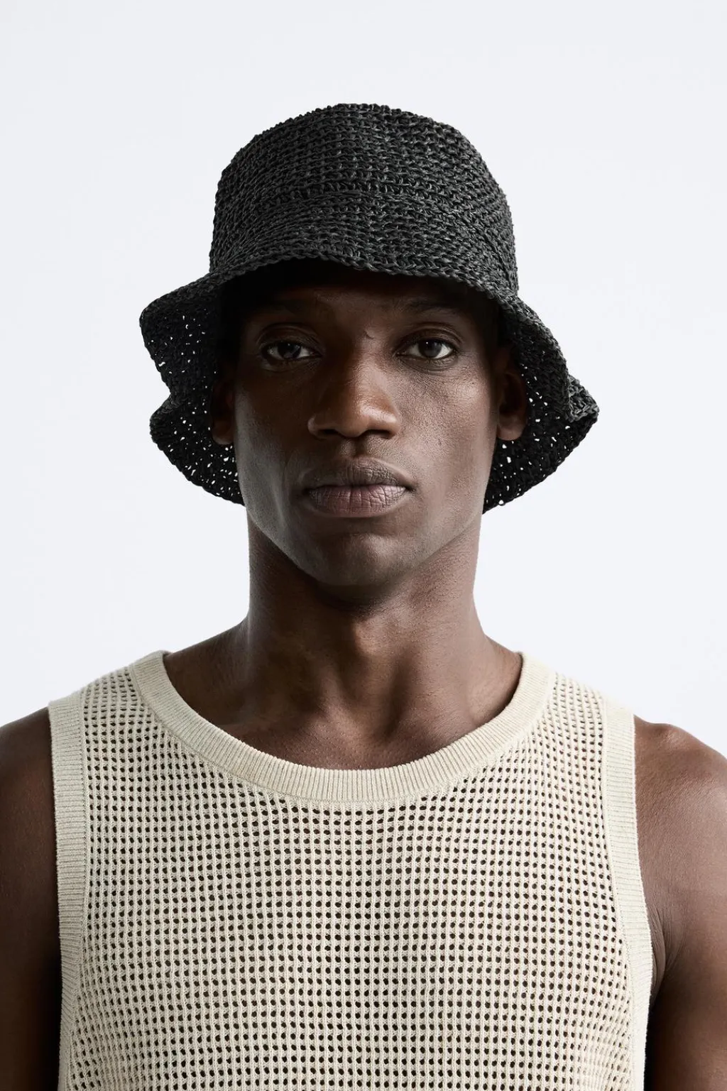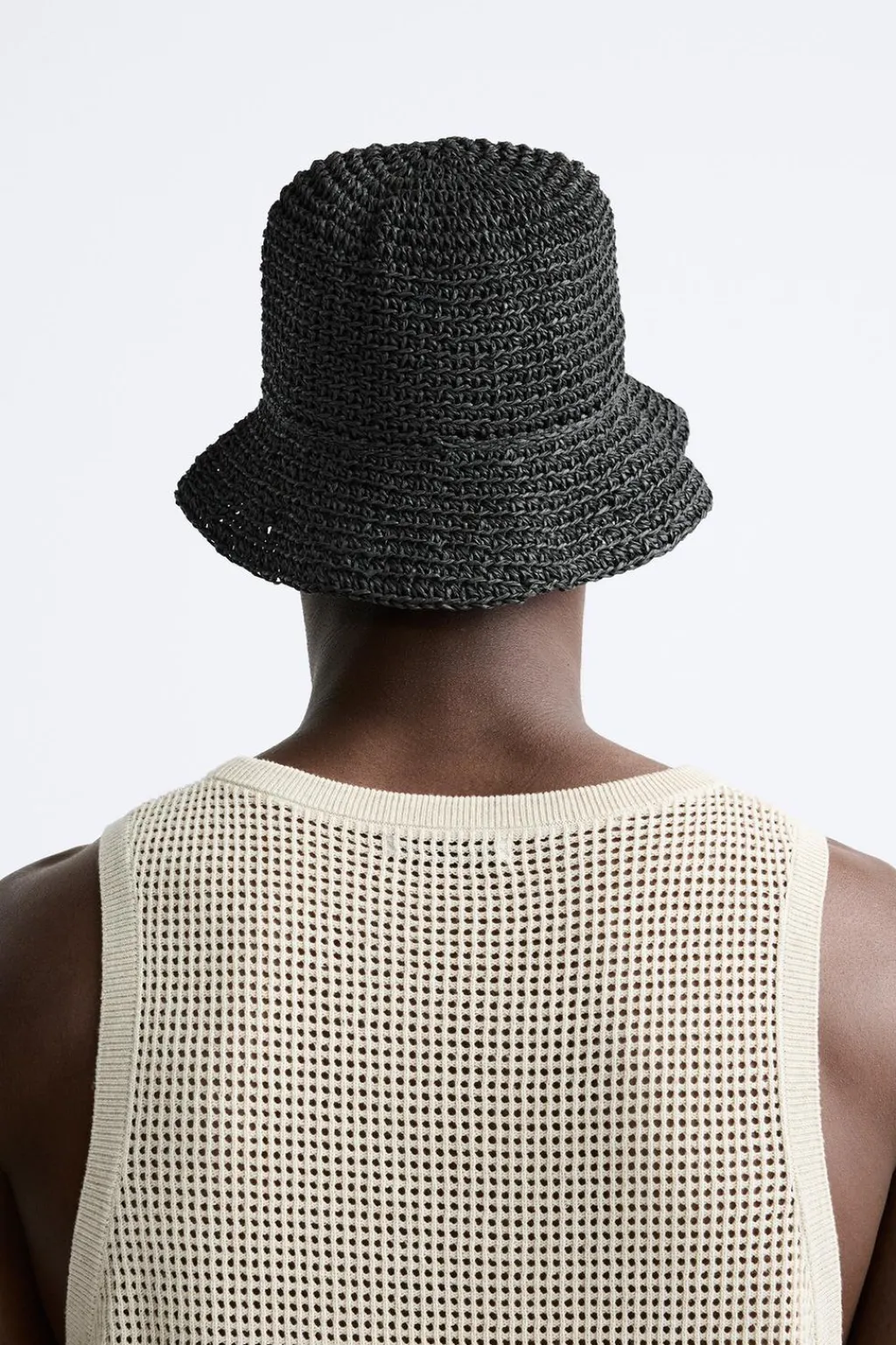 Sombrero tejido con estructura abierta.