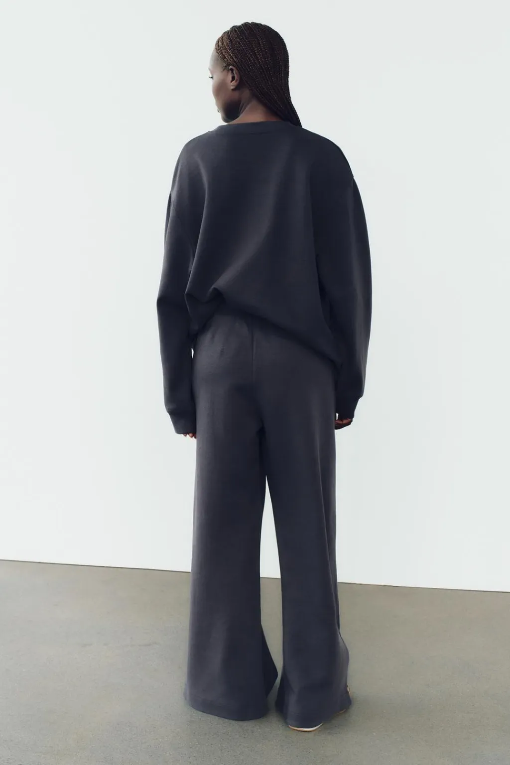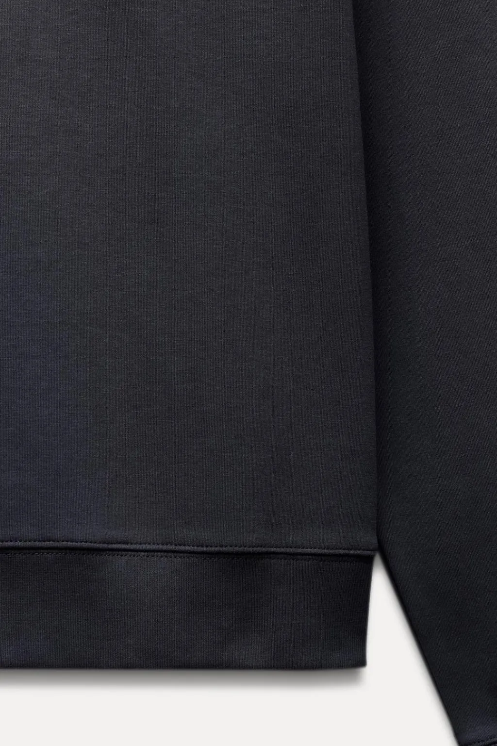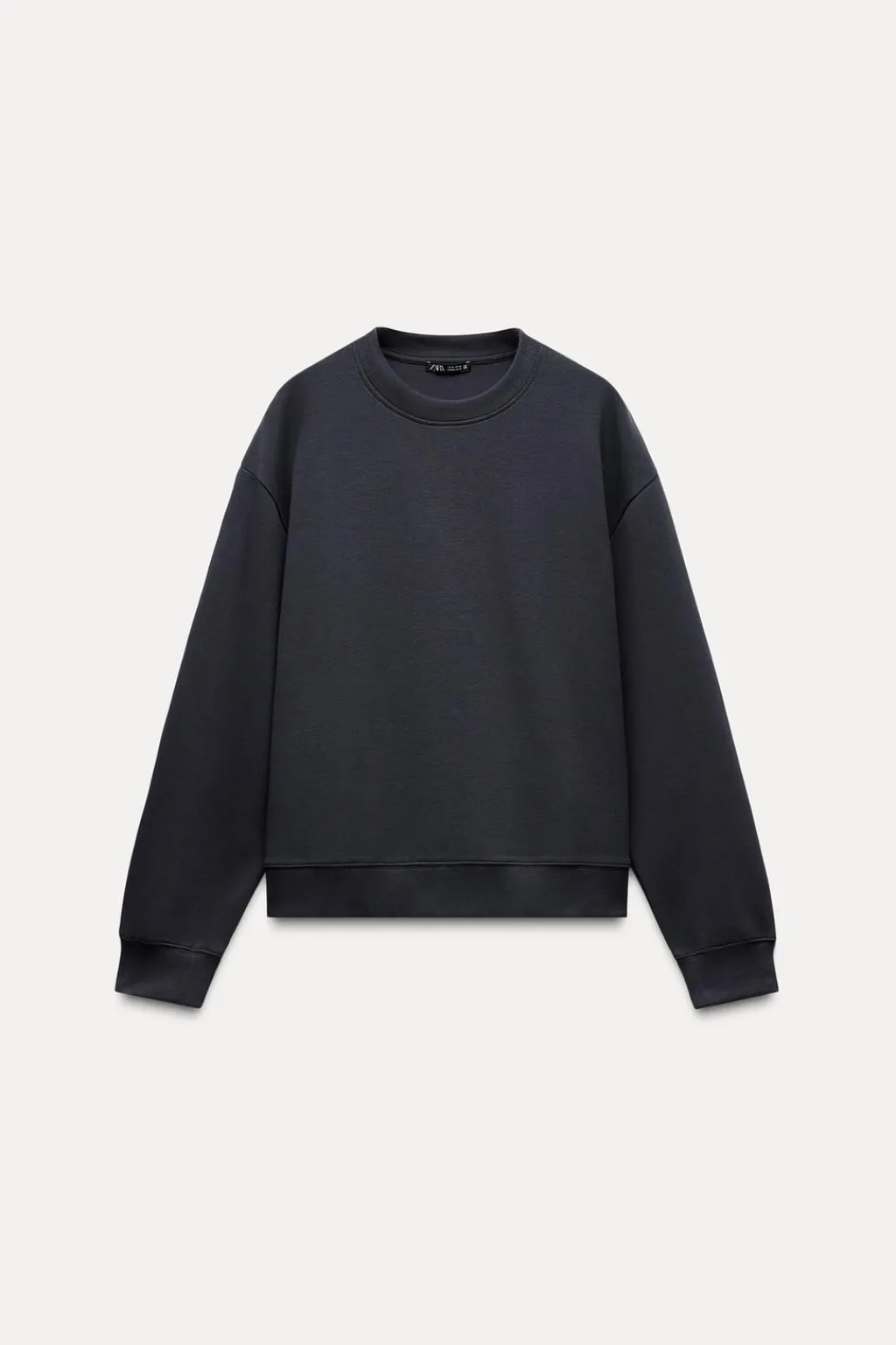 Sudadera confeccionada en tejido de punto elástico y flexible con trama compacta, mullida y opaca. Cuello redondo y manga larga. Acabados en rib a tono.