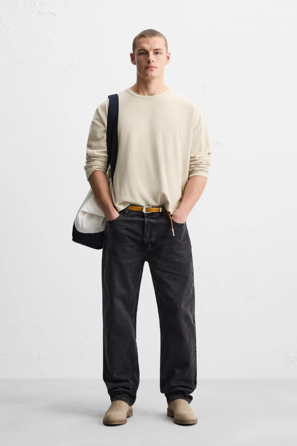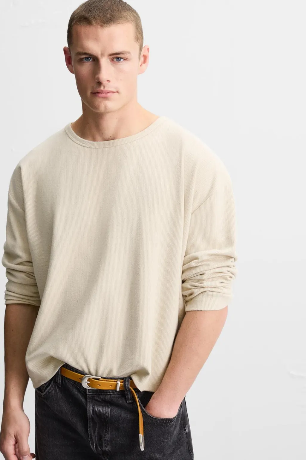 Sudadera boxy fit confeccionada en tejido con tacto suave. Cuello redondo y manga larga.