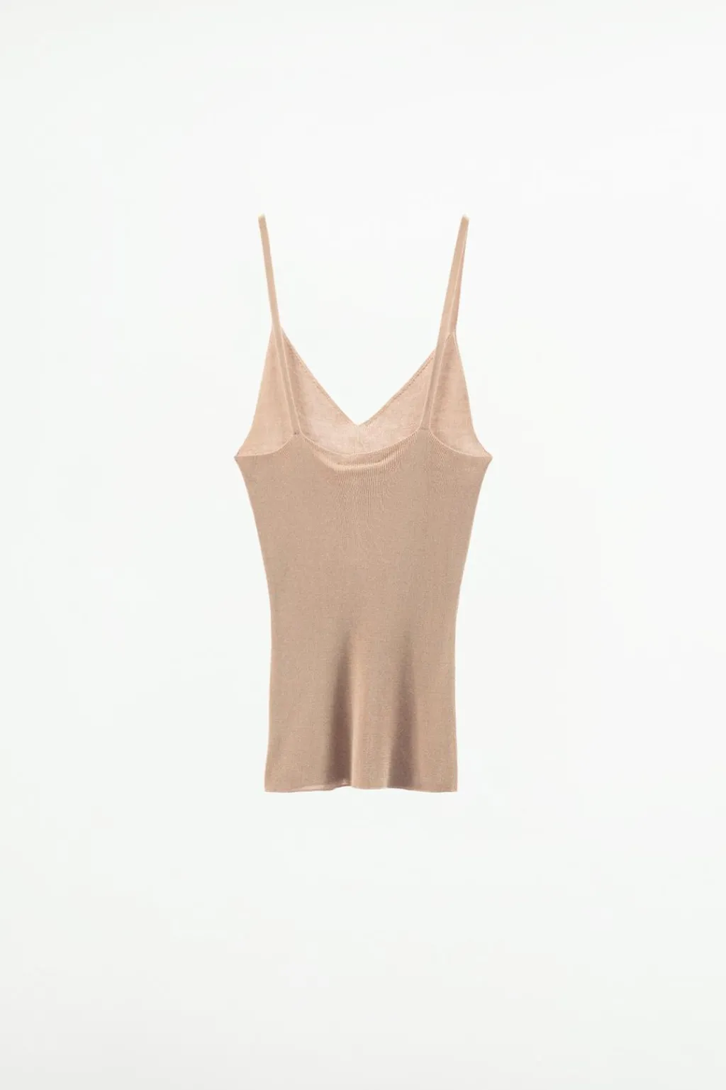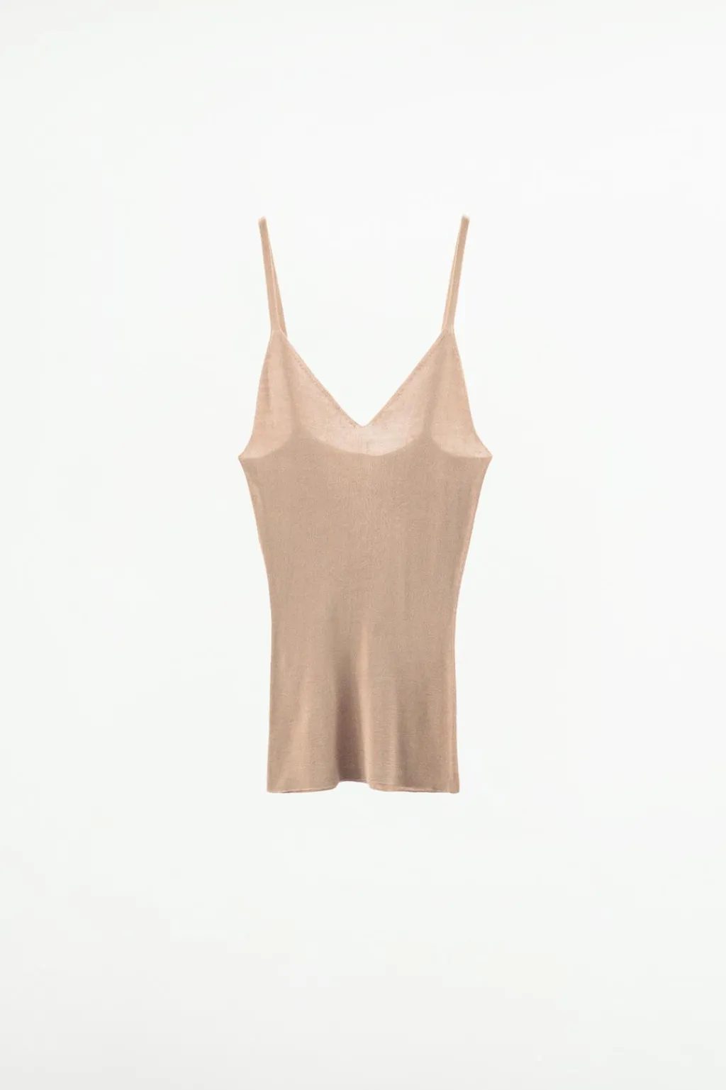 Top confeccionado en hilatura de seda 100%. Escote recto y tirantes finos.