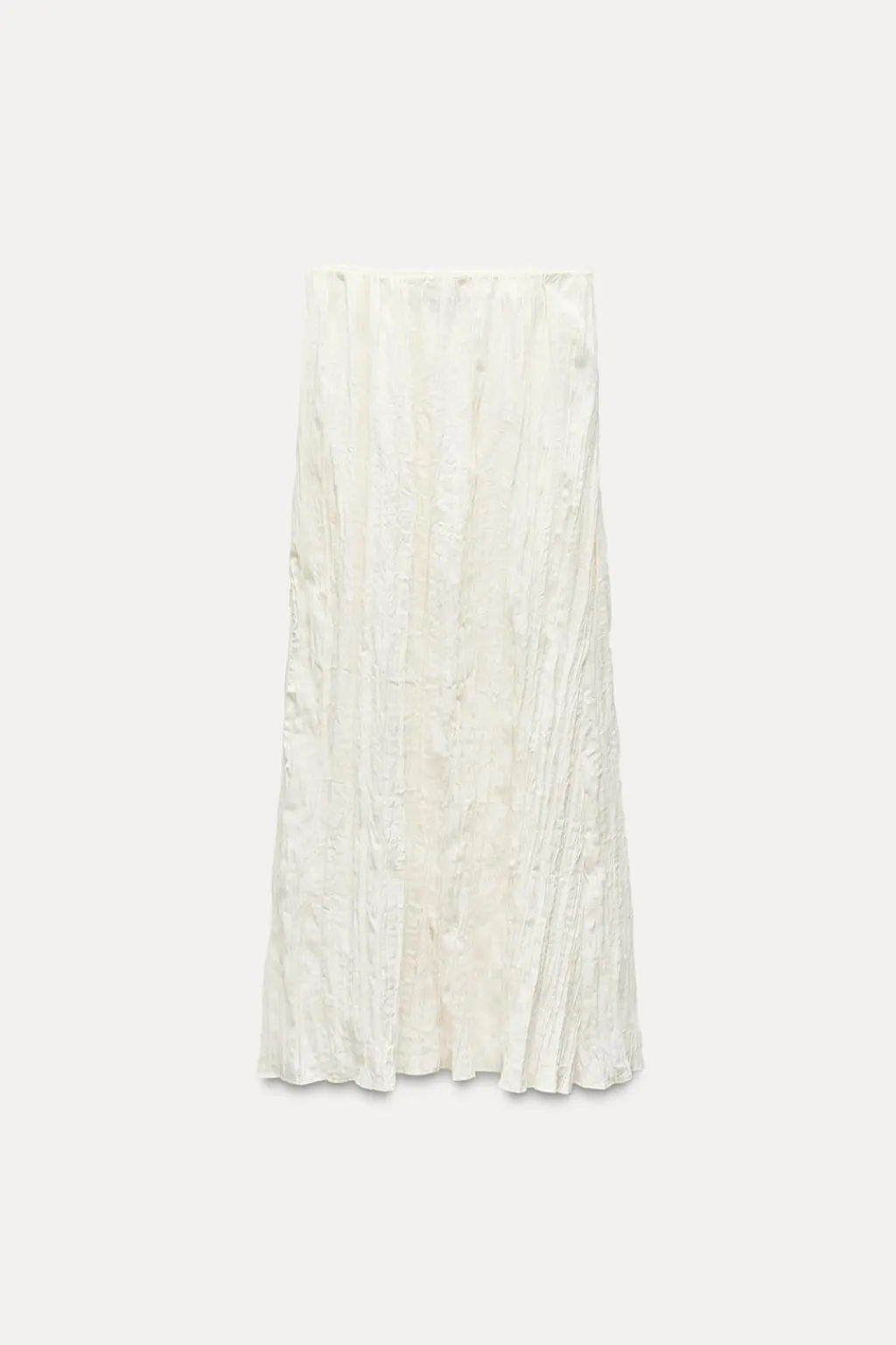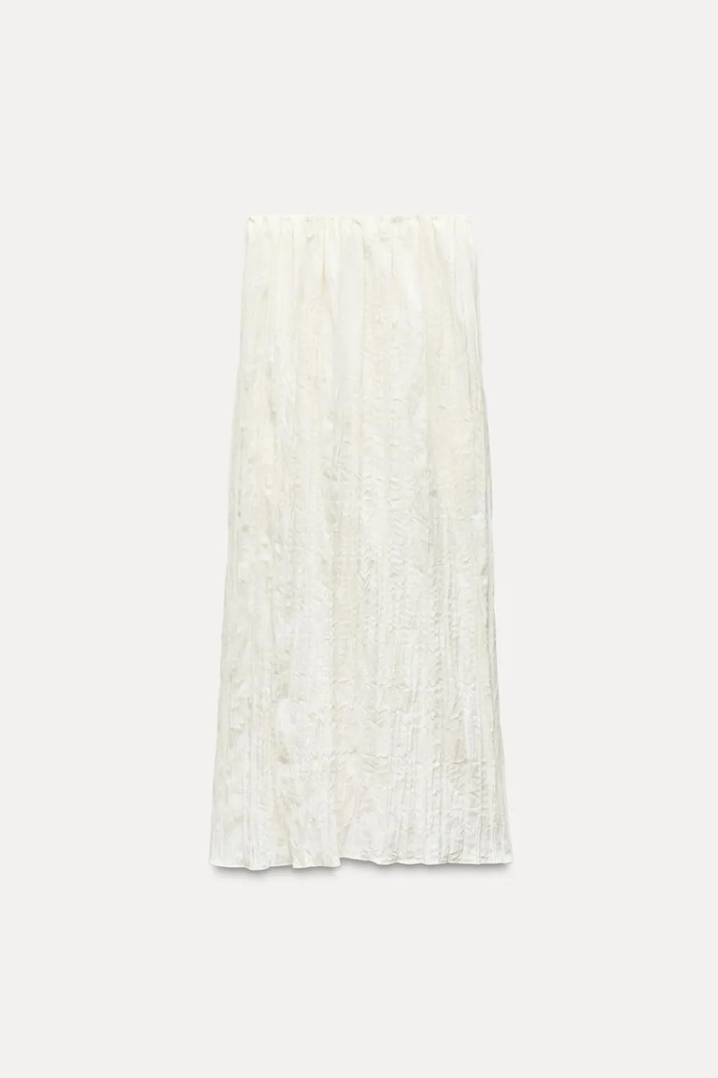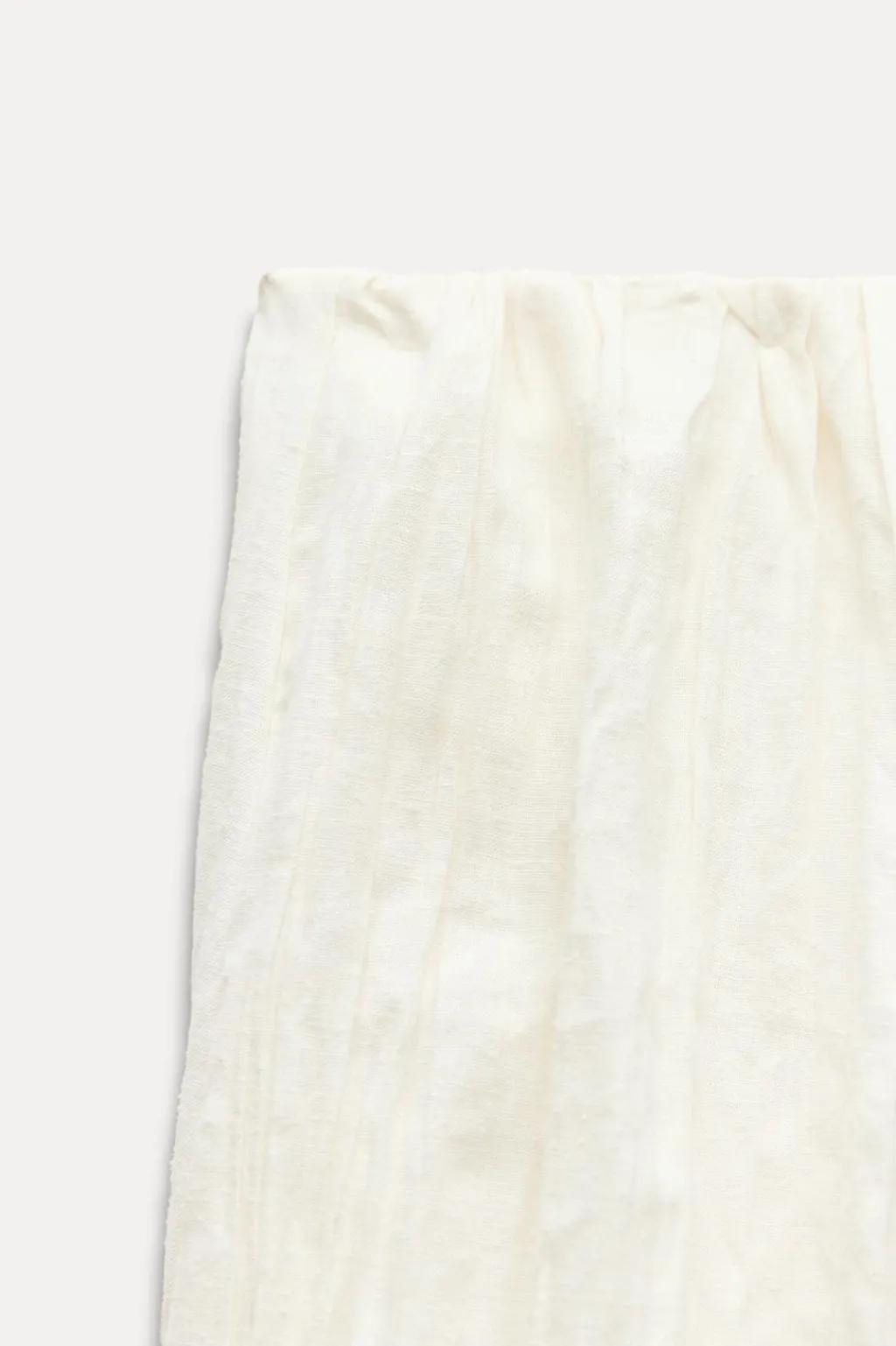 Vestido midi palabra de honor. Detalle de tejido con estructura.