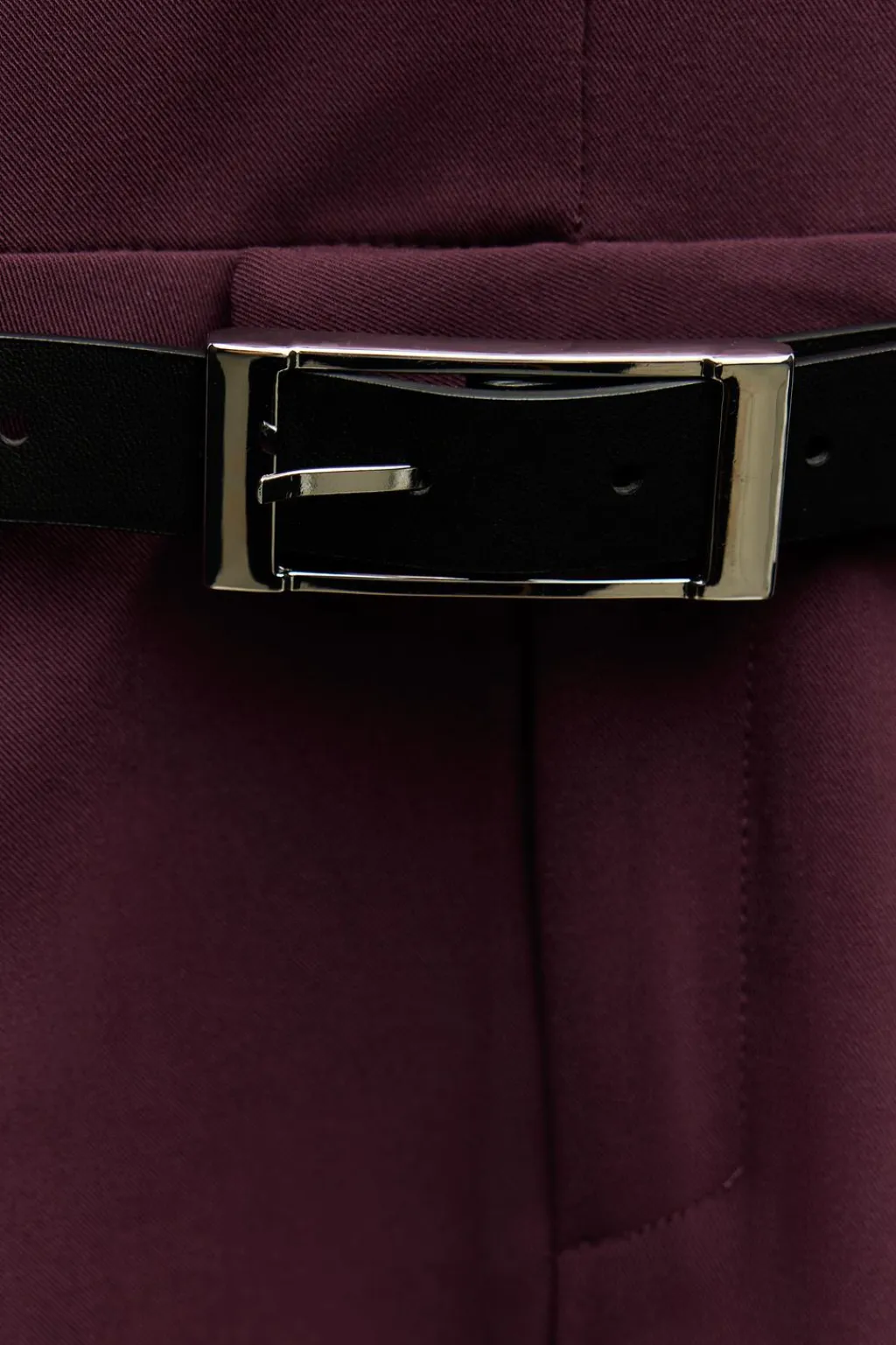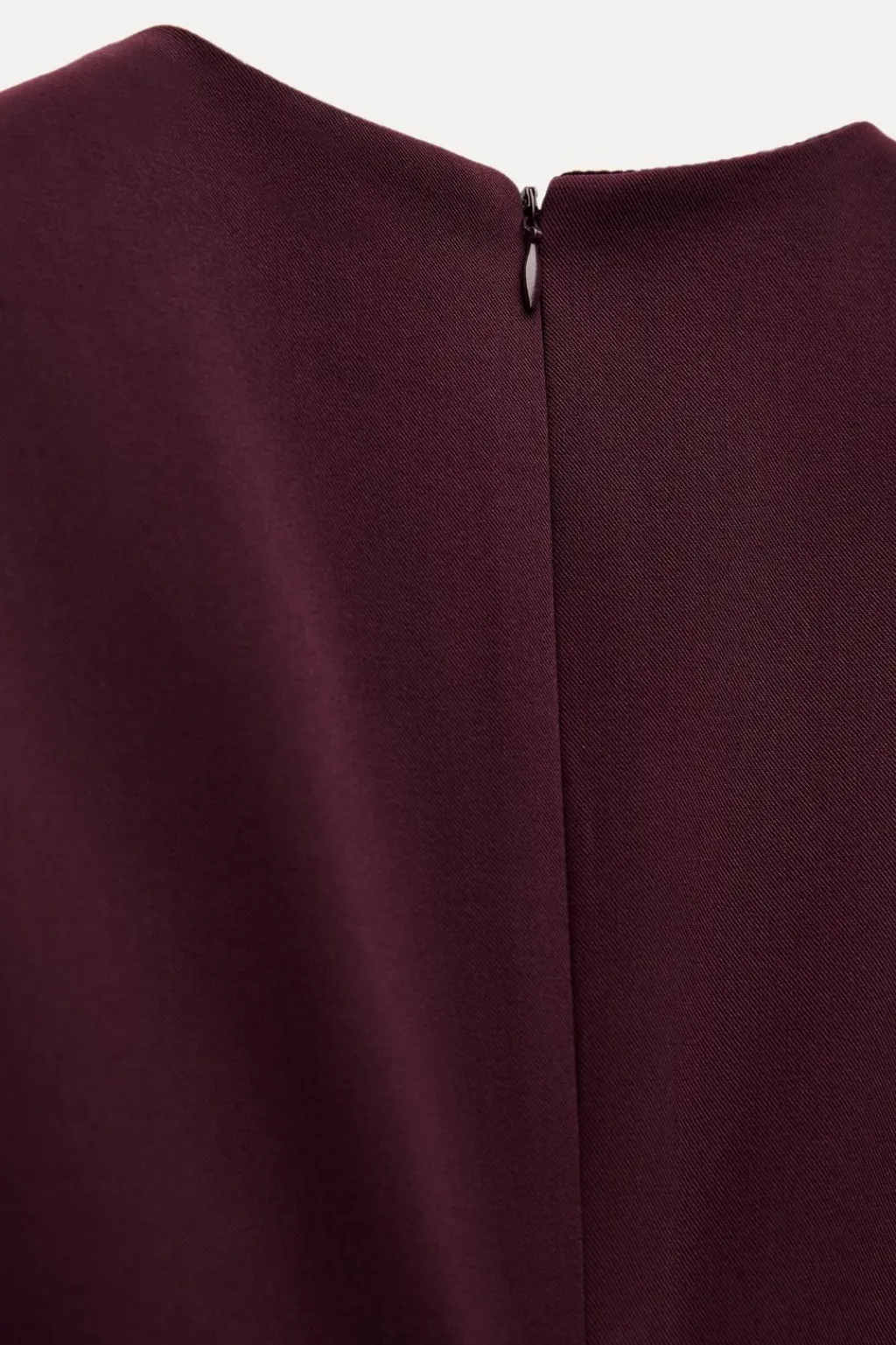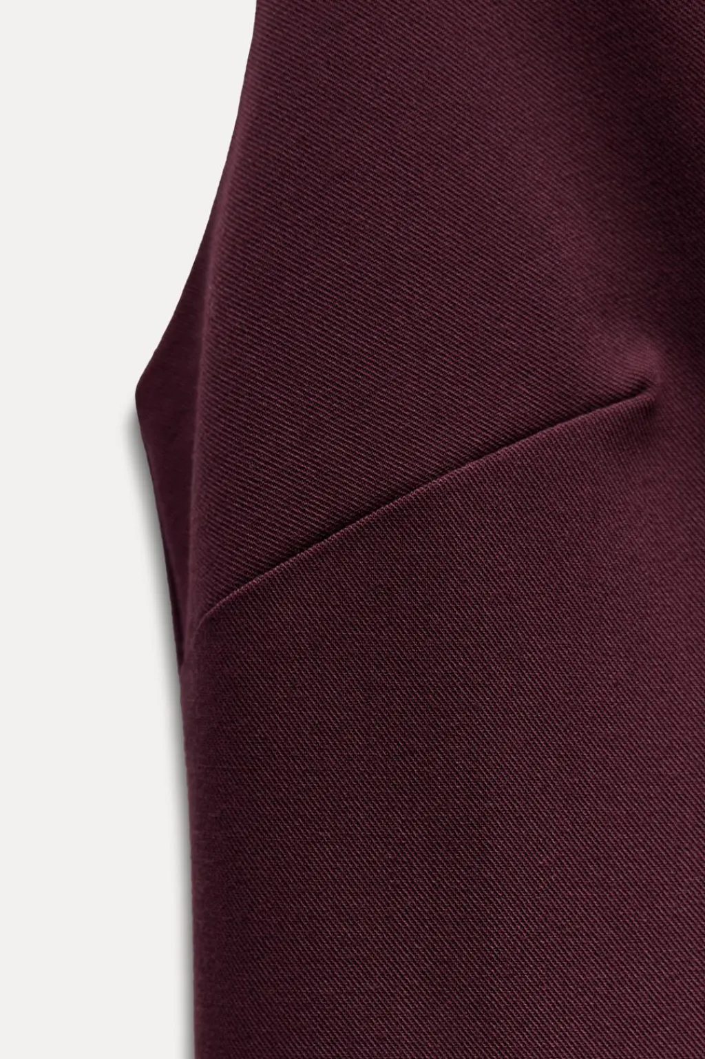 Vestido corto de escote pico y manga sisa. Falso bolsillo de vivo en espalda. Bajo acabado en tablas. Detalle de cinturón combinado a contraste con hebilla metálica. Cierre en espalda con cremallera oculta en costura.