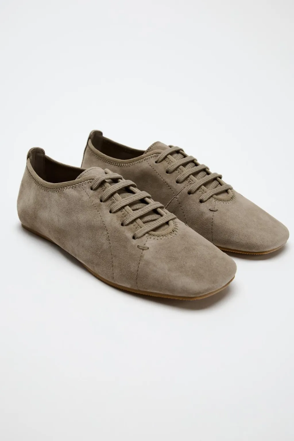 Zapato plano tipo blucher en ante. Cierre mediante cordones.