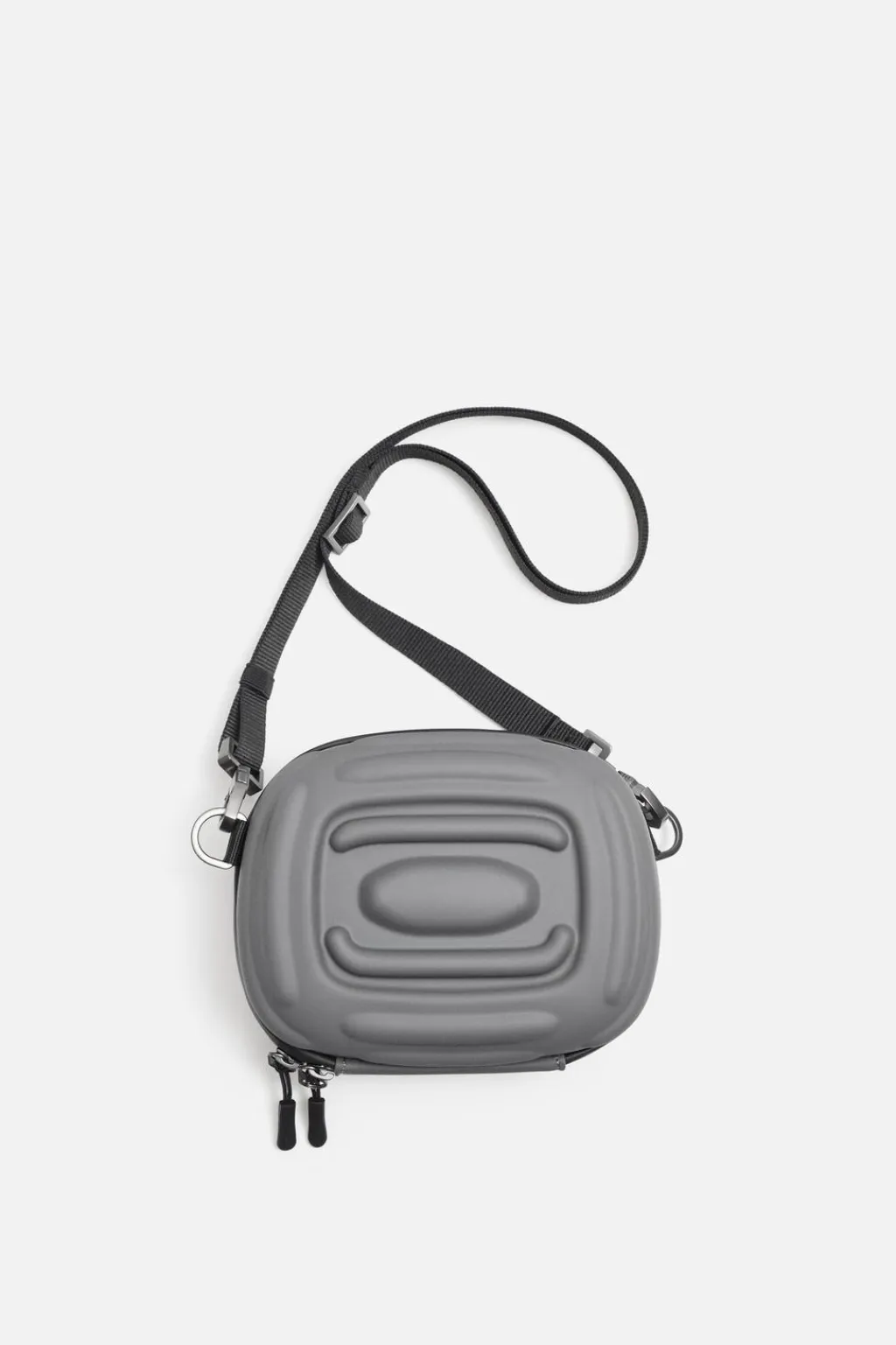 Bandolera rígida. Compartimento principal con cierre mediante cremallera escondida y en su interior tiene un bolsillo de rejilla. Dispone de un asa de hombro ajustable y extraíble.