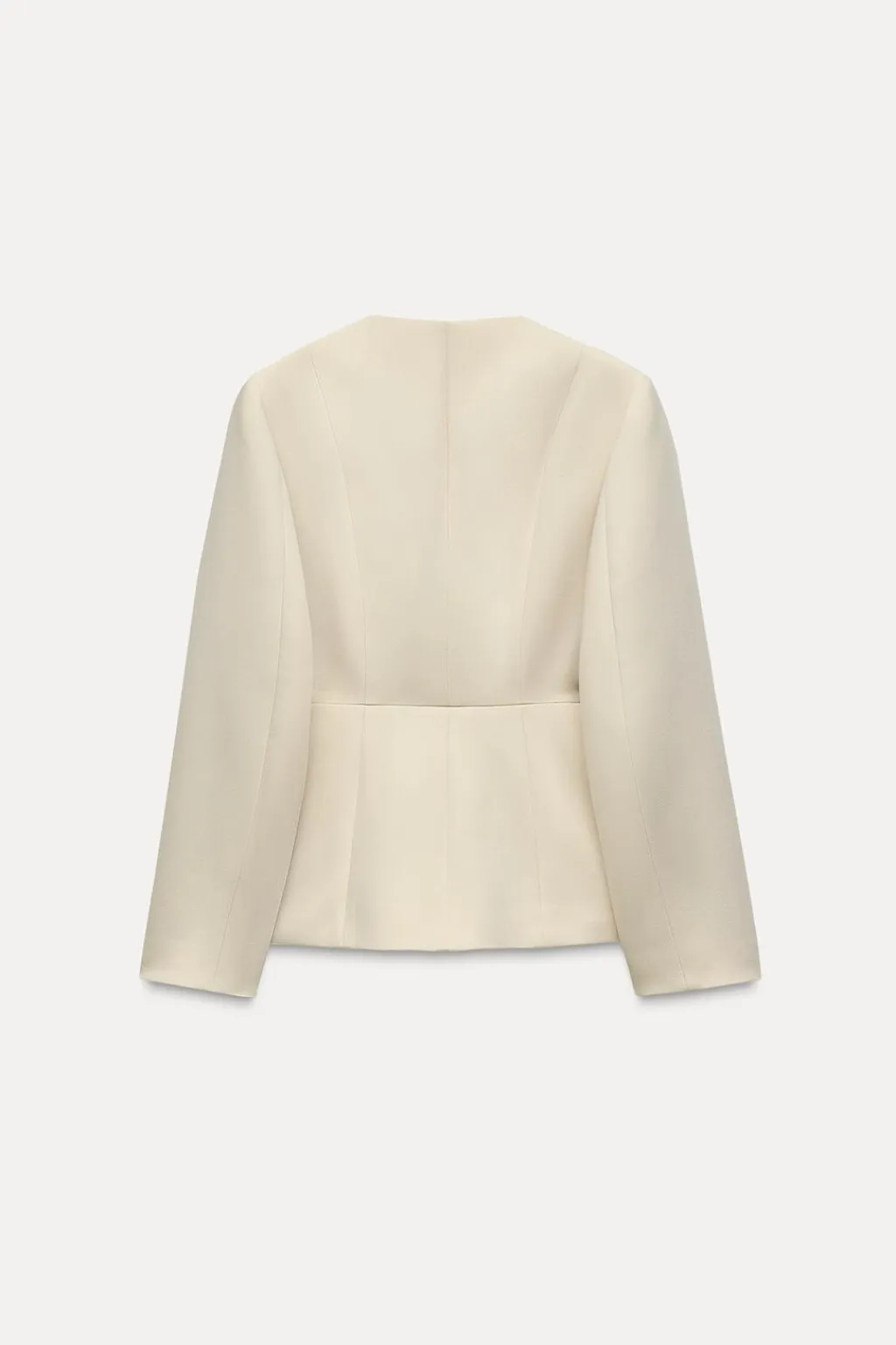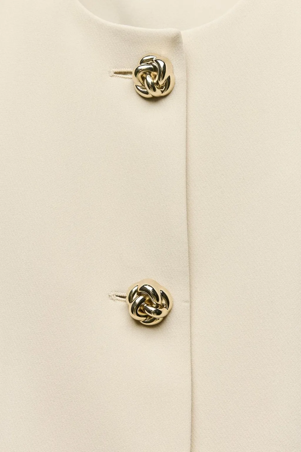 Blazer de cuello redondo y manga larga con hombros marcados. Detalle de tapetas delanteras y bolsillos. Cierre frontal con botones dorados con relieve.