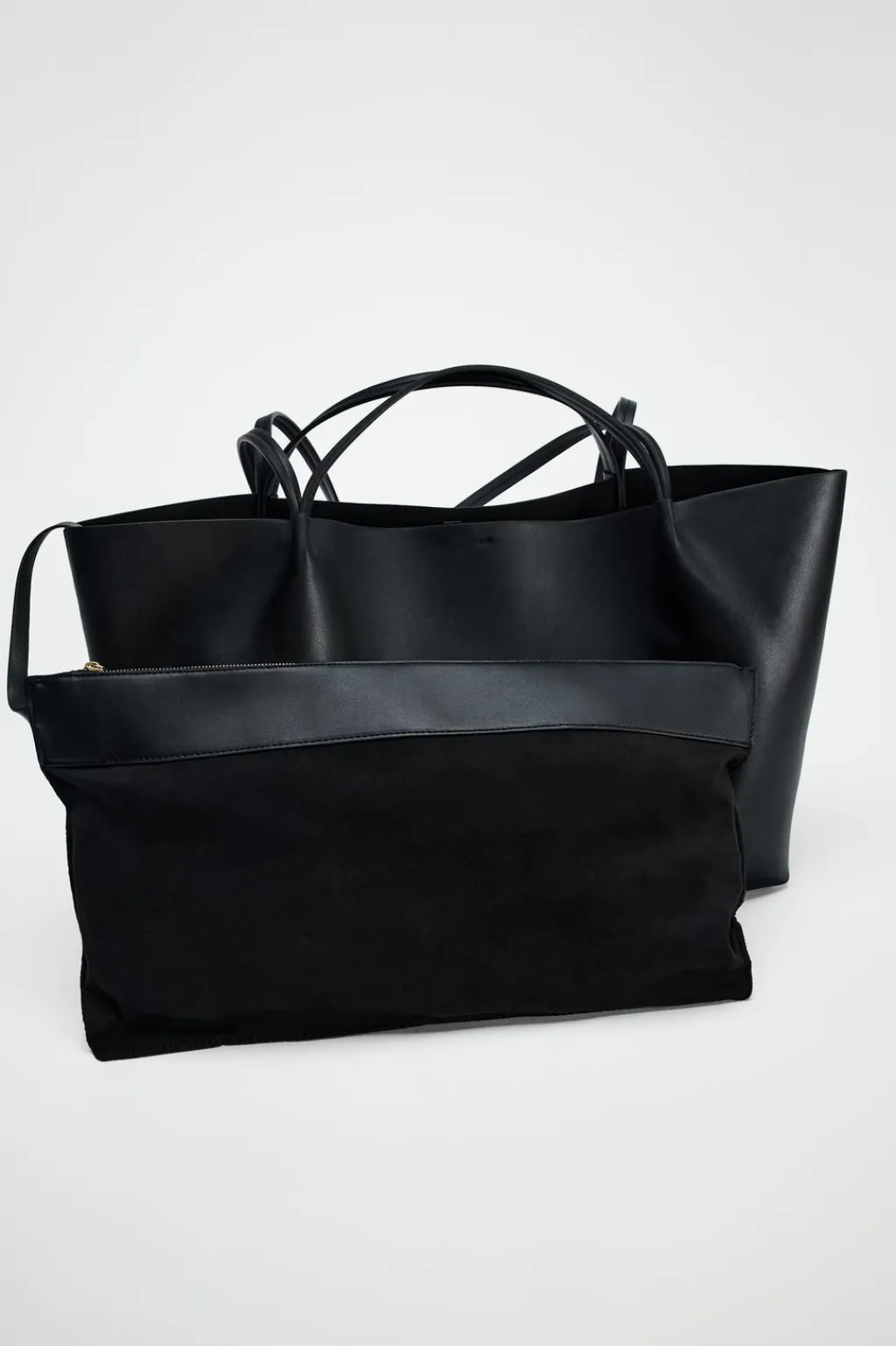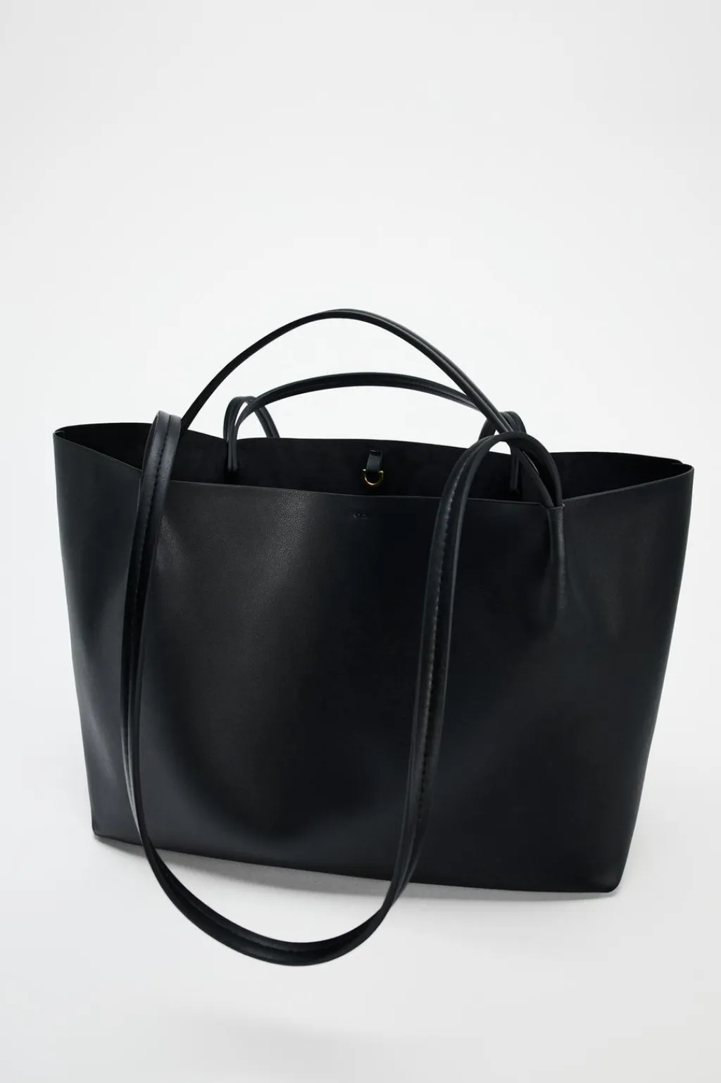 Bolso formato shopper. Asas de mano y asas de hombro. Bolsa interior extraíble. Cierre mediante hebilla.