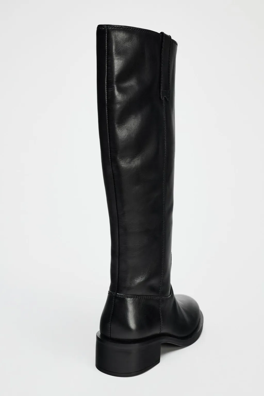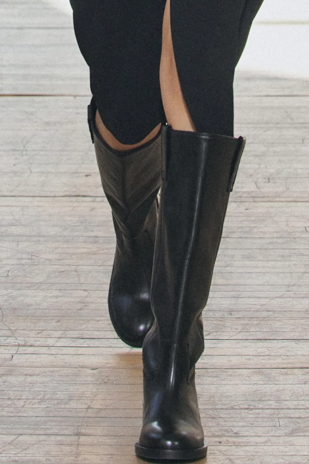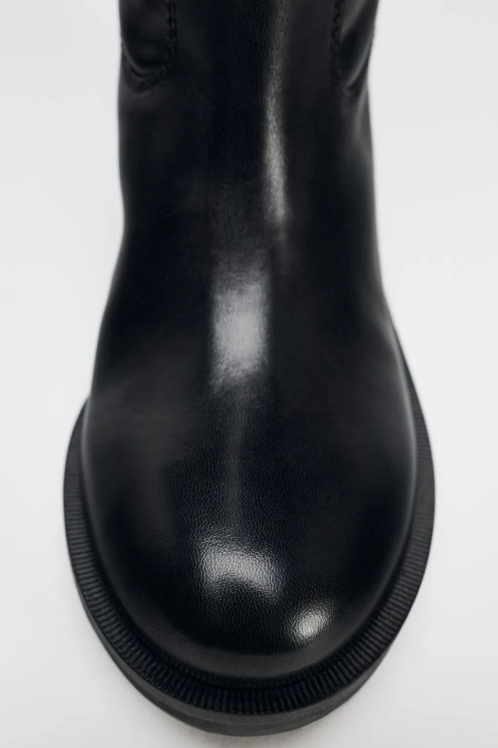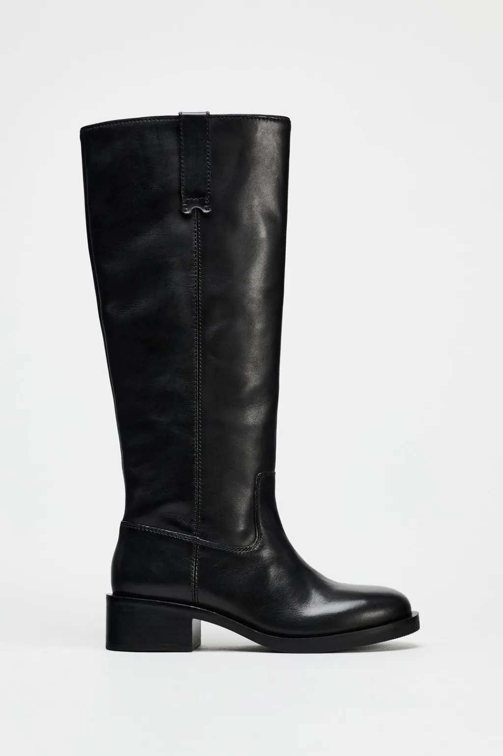 Zapato tipo bota plana en piel. Detalle de tiradores en las partes laterales. Acabada en punta redonda.
