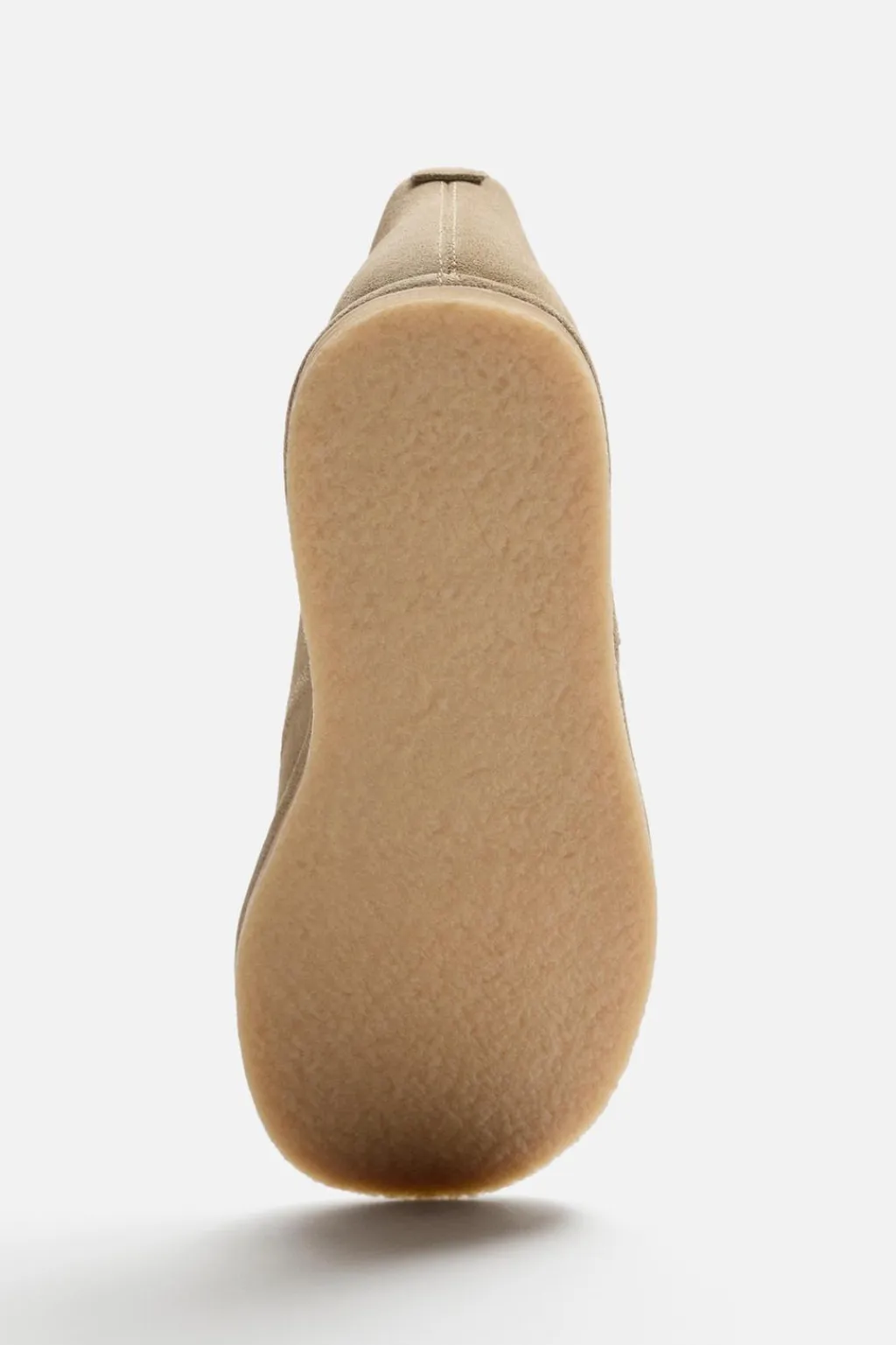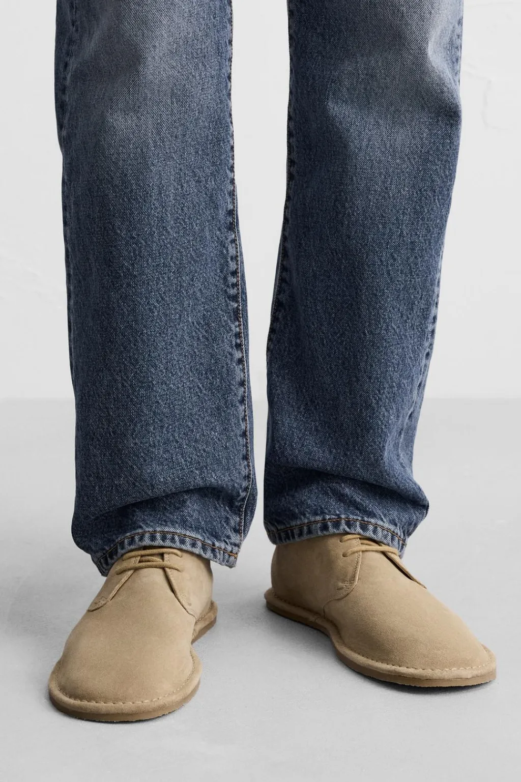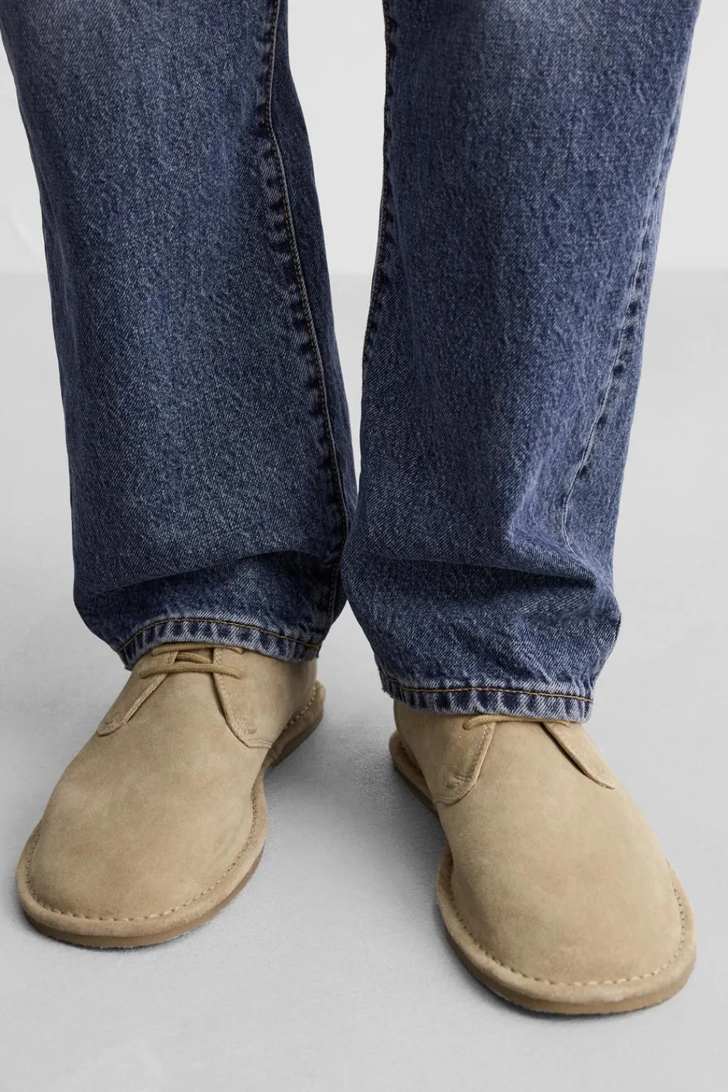 Botín fabricado en piel con acabado serraje. Cordonera con tres pasados. Plantilla interior fabricada en piel. Suela ultrafina. Diseño de inspiración rústica.