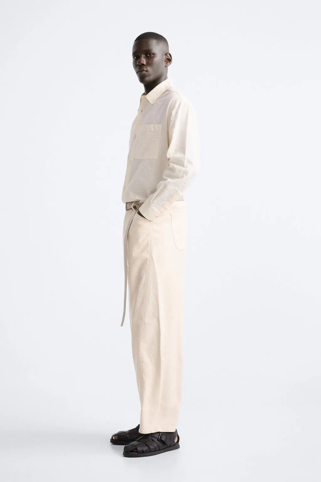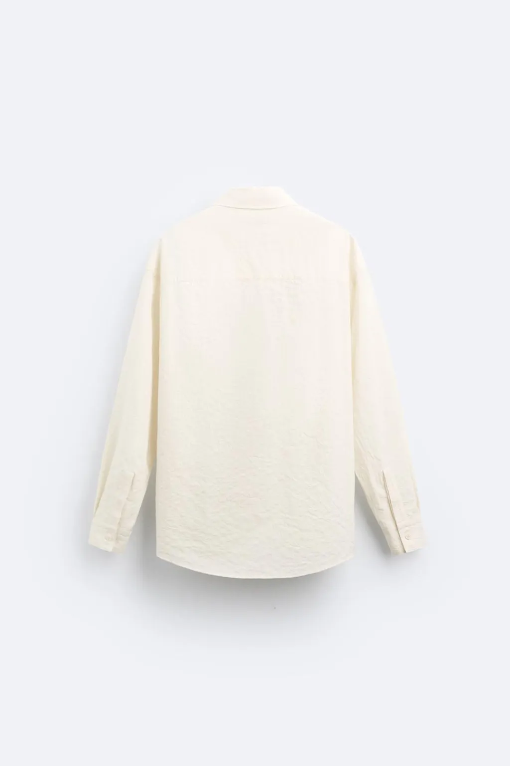 Camisa relaxed fit confeccionada en tejido de algodón con elasticidad. Cuello solapa y manga larga acaba en puño con botón. Bolsillo plastrón en pecho. Efecto arrugado. Cierre frontal de botonadura.