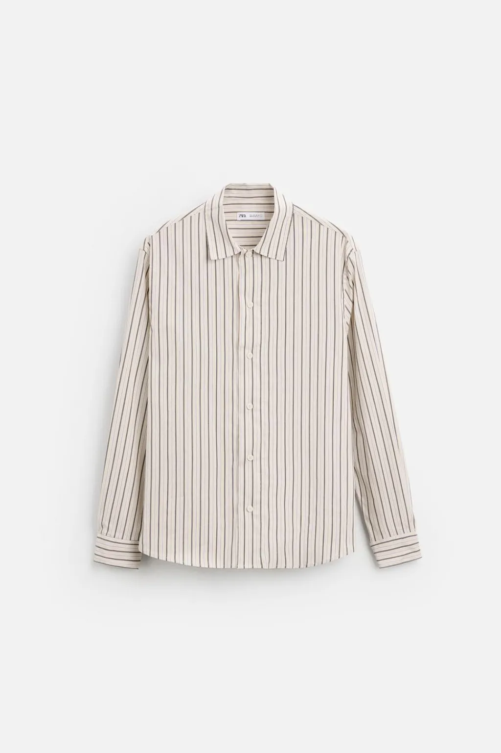 Camisa relaxed fit confeccionada en tejido de algodón con elasticidad. Cuello solapa y manga larga acabada en puño con botón. Cierre frontal de botonadura.