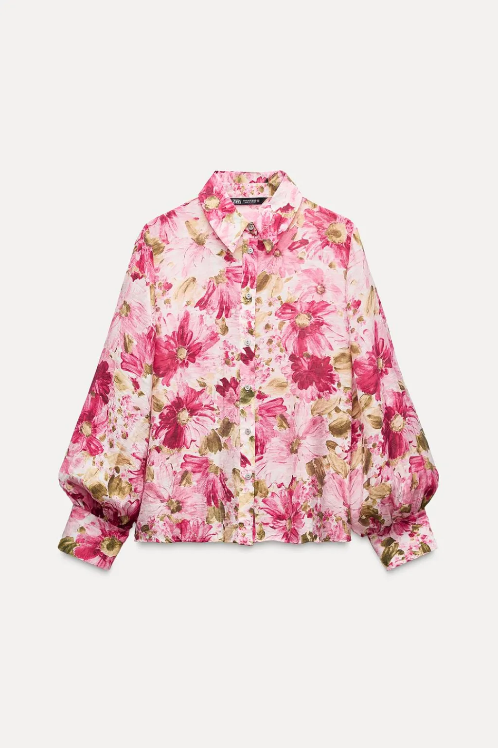 Camisa fluida de cuello solapa y manga larga. Cierre frontal con botones.