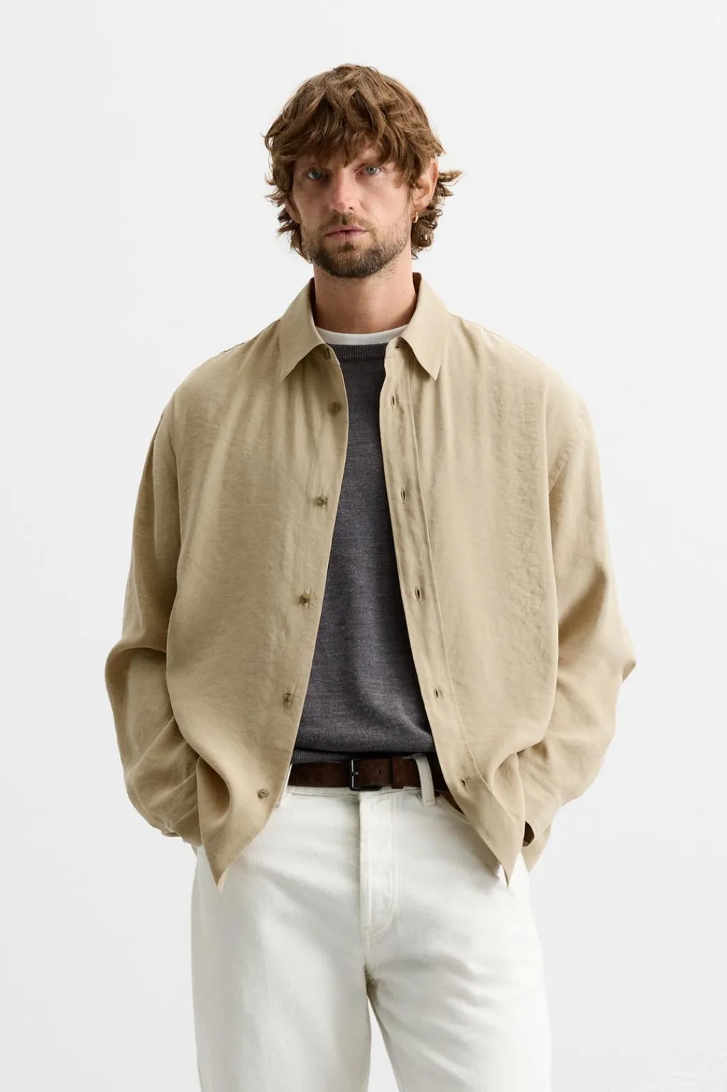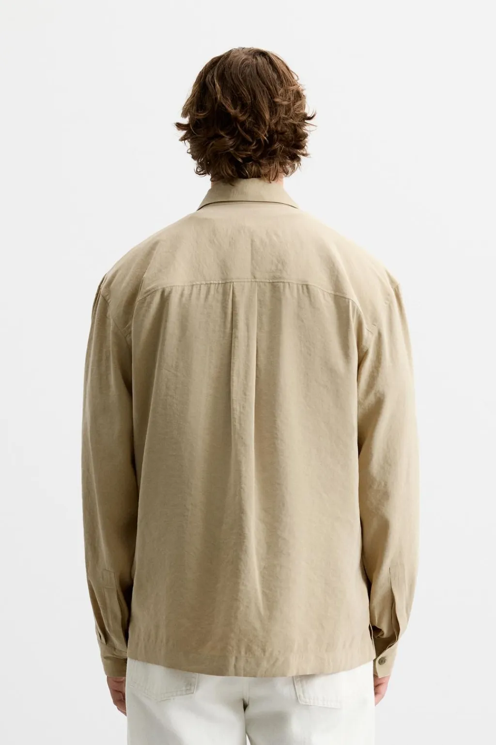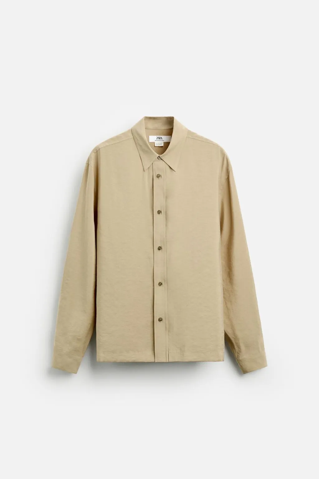 Camisa relaxed fit confeccionada en tejido con mezcla de modal. Cuello solapa y manga larga. Cierre frontal de botonadura.