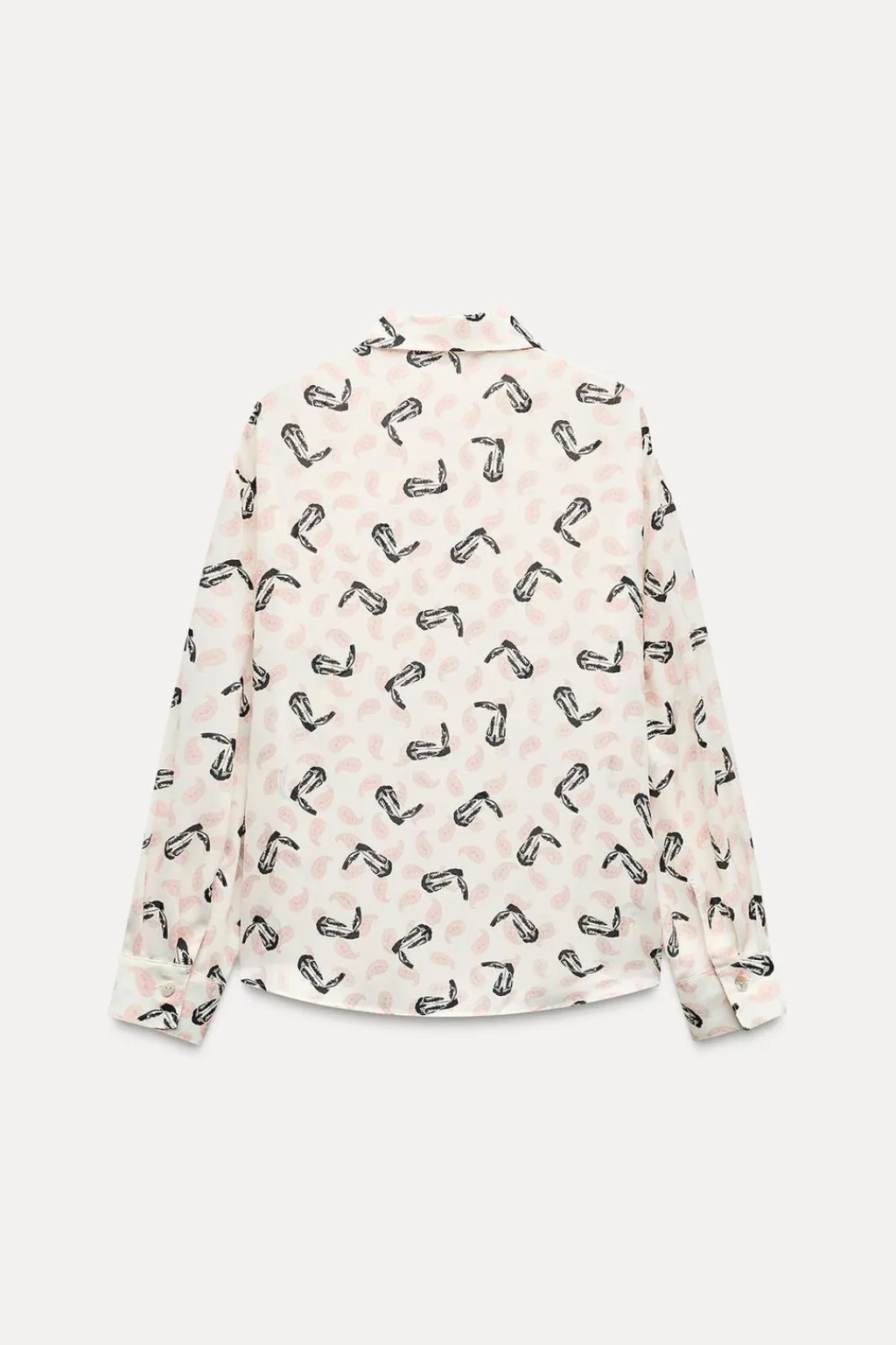 Camisa fluida de cuello solapa y manga larga. Cierre frontal con botones.