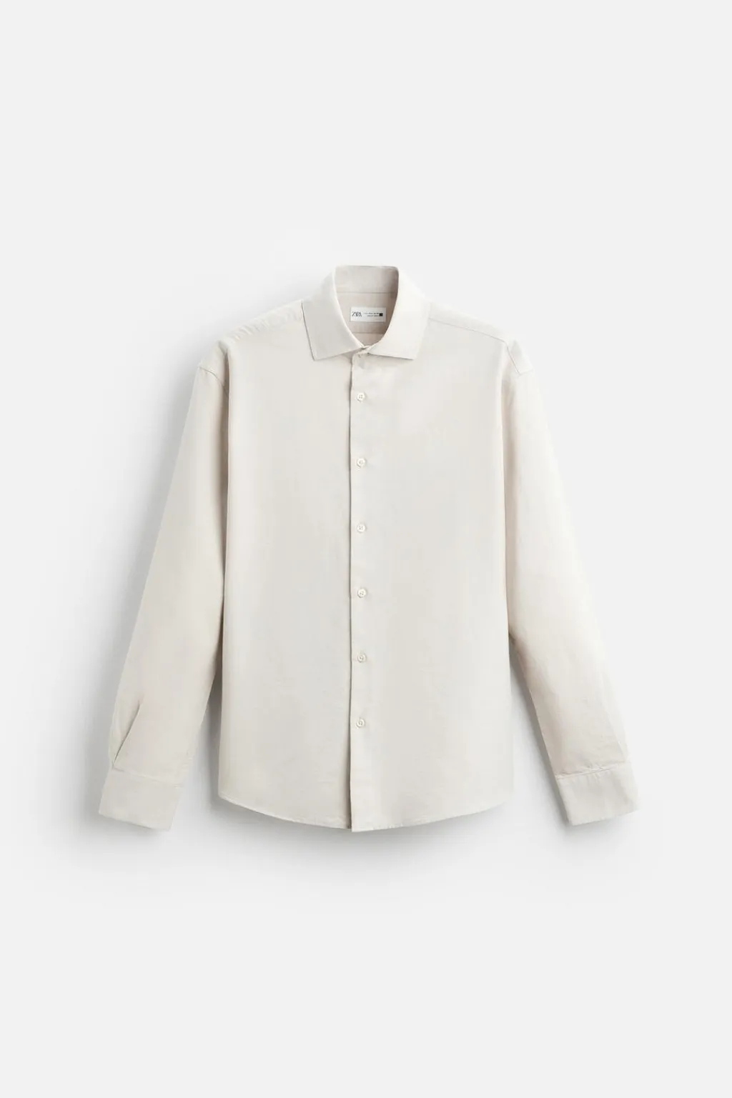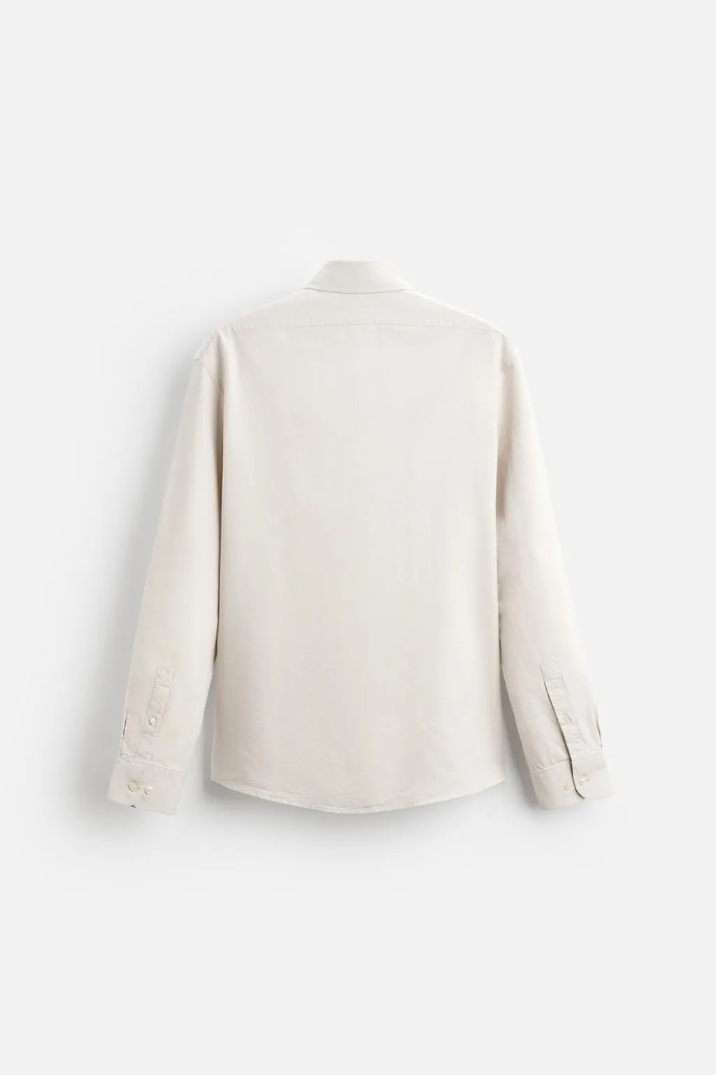 Camisa regular fit confeccionada en tejido de algodón. Cuello italiano abierto y manga larga acabada en puño con botón. Cierre frontal de botonadura.