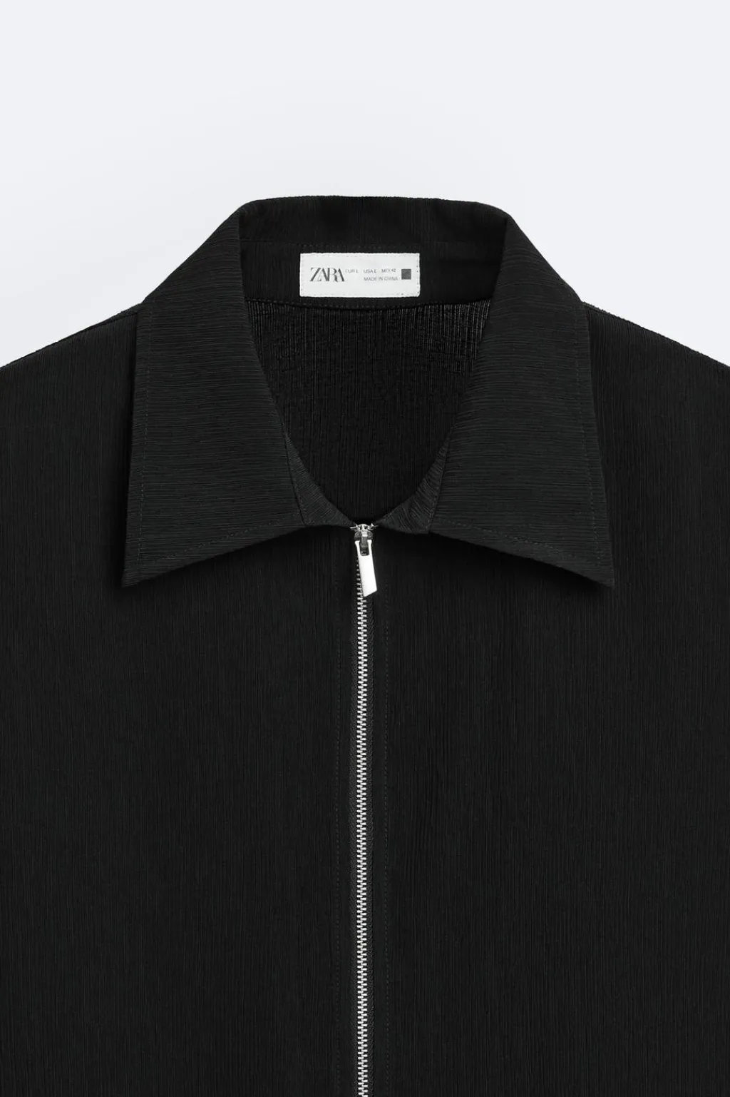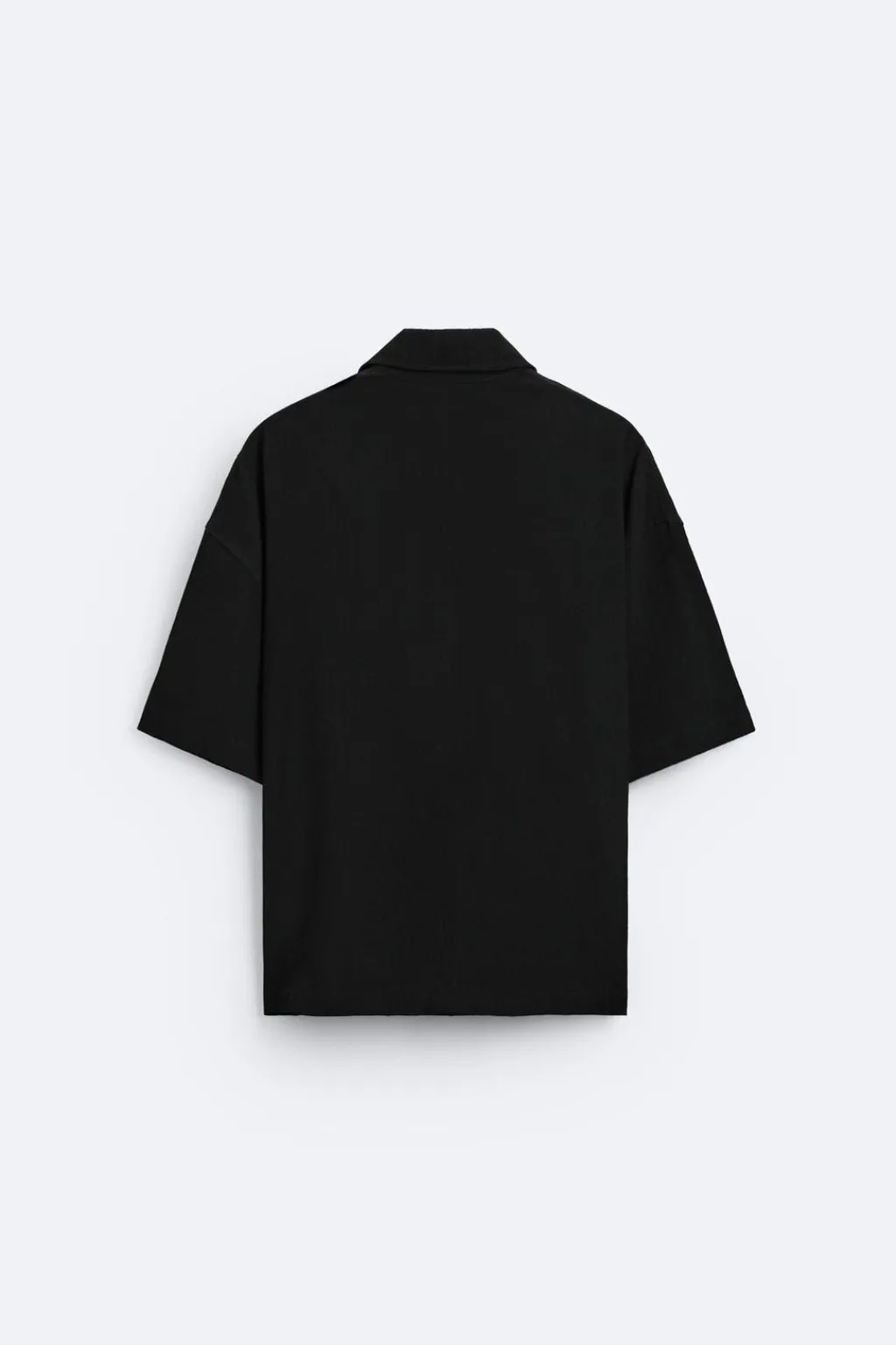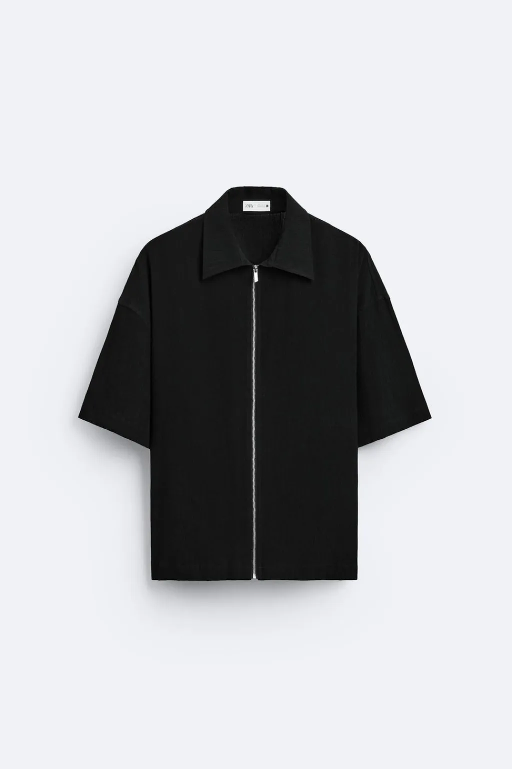 Camisa relaxed fit. Cuello solapa y manga corta. Cierre frontal de cremallera.