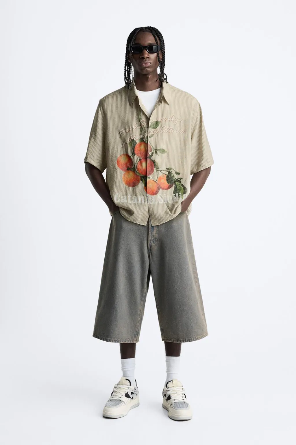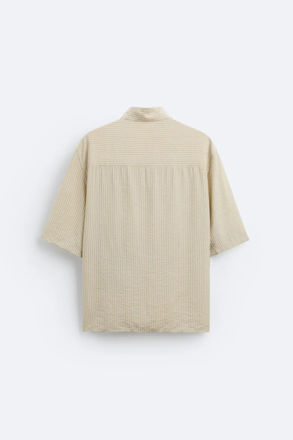 Camisa relaxed fit confeccionada en tejido con mezcla de viscosa. Cuello solapa y manga corta. Estampación frontal combinada a contraste. Cierre frontal de botonadura.