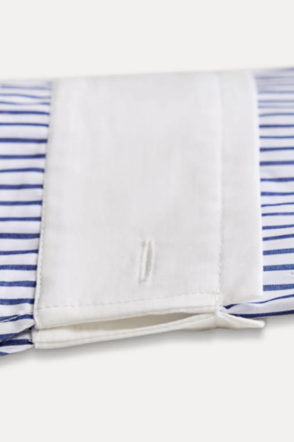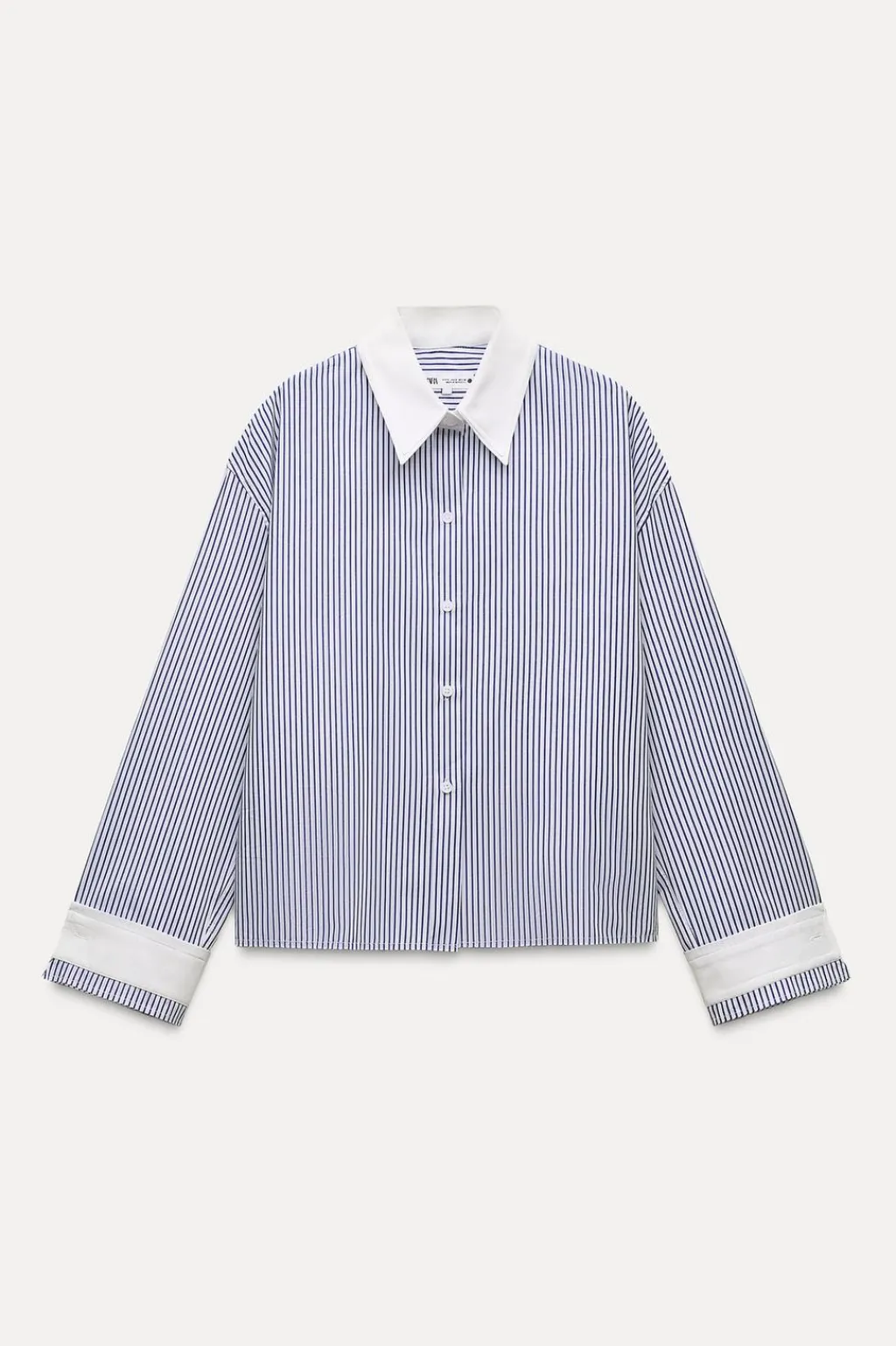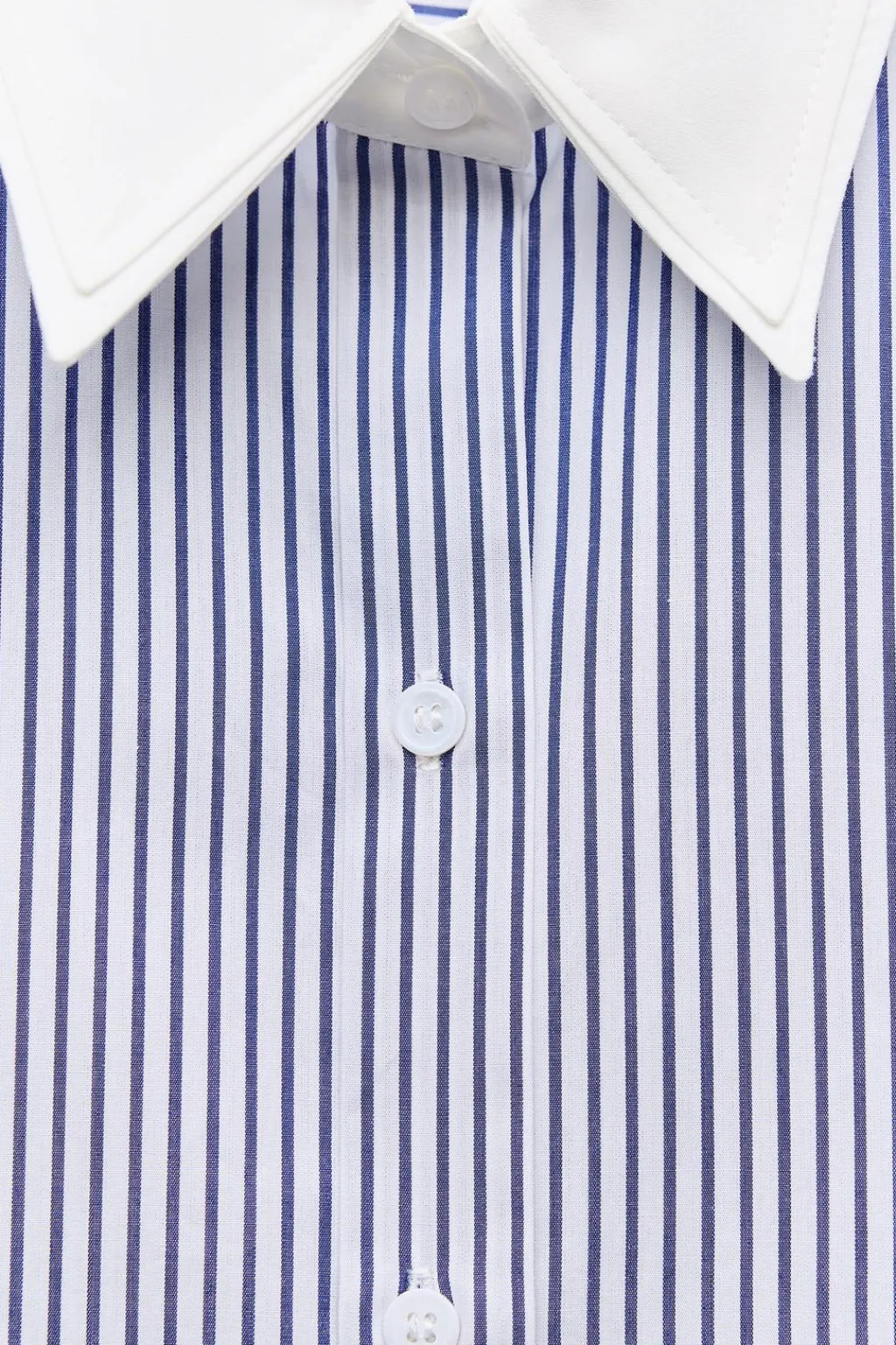 Camisa confeccionada en hilatura de algodón 100%. Cuello solapa doble combinado a contraste. Manga larga acabada en puño combinado con abertura. Detalle de pinzas en espalda. Cierre frontal con botones.