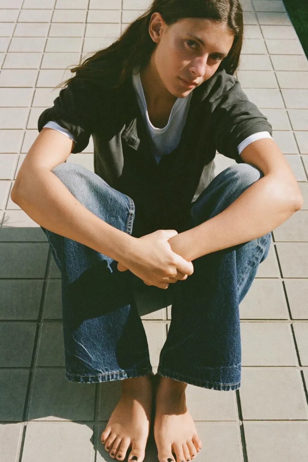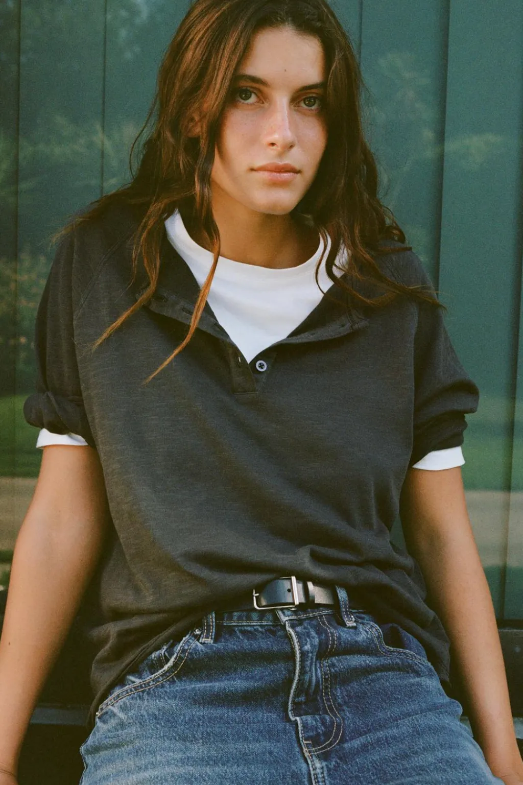 Camiseta confeccionada en algodón 100% efecto lavado. Cuello redondo y manga larga. Cierre tipo polo con botones en delantero.