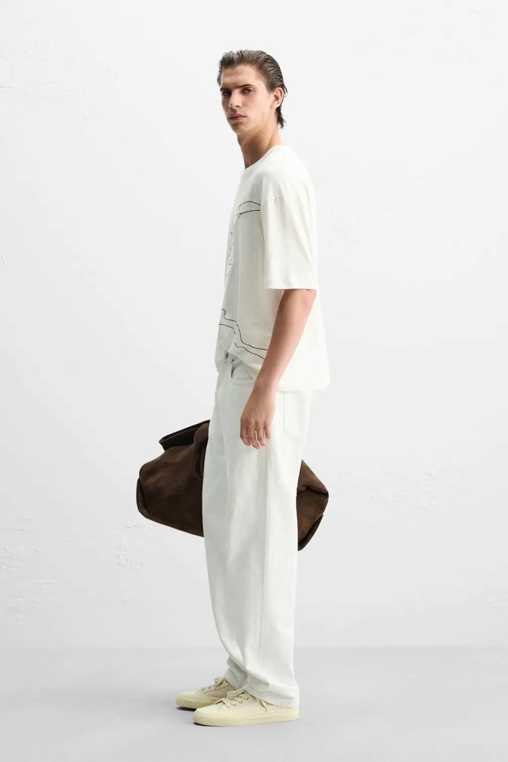 Camiseta relaxed fit. Cuello redondo y manga corta. Detalle de bordado lineal combinado a contraste en delantero.
