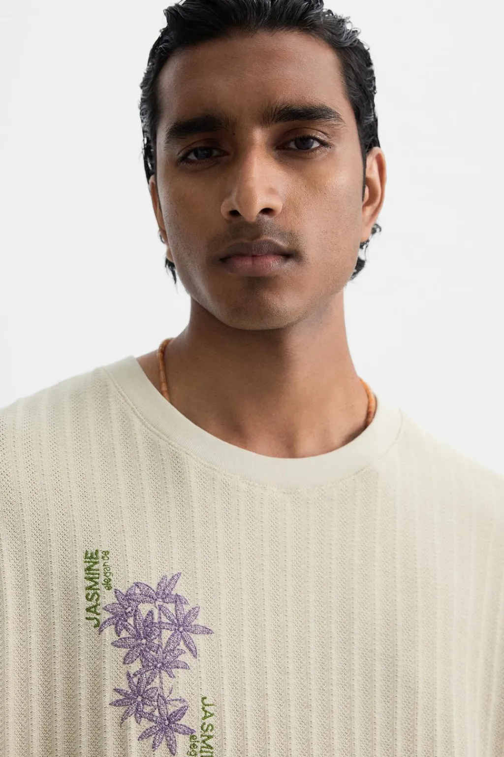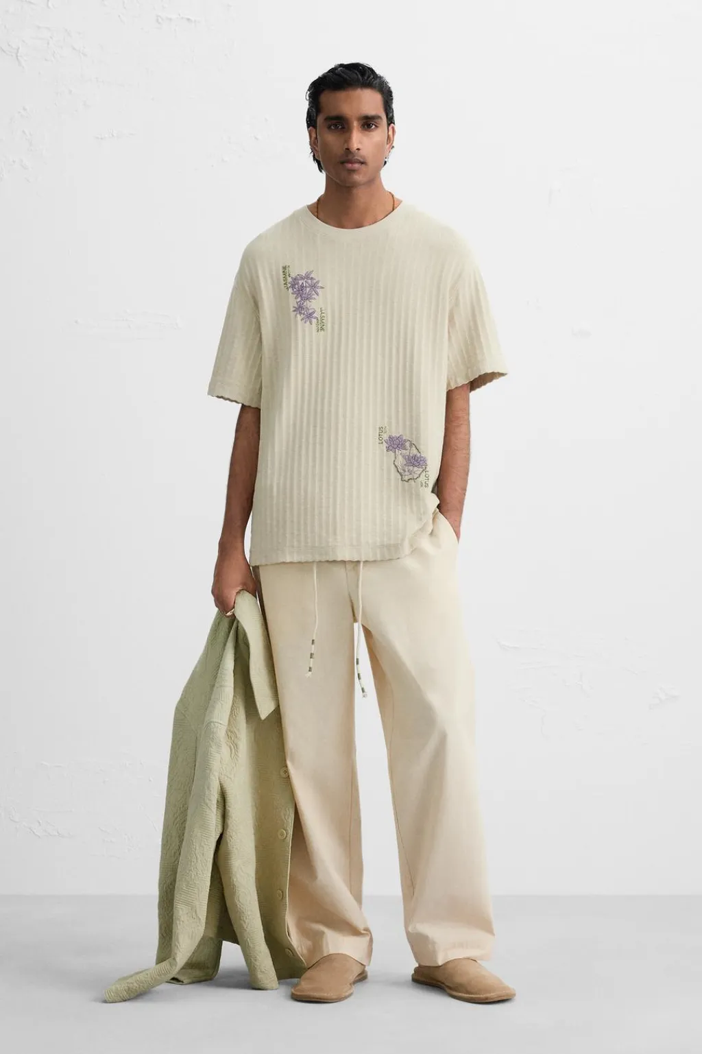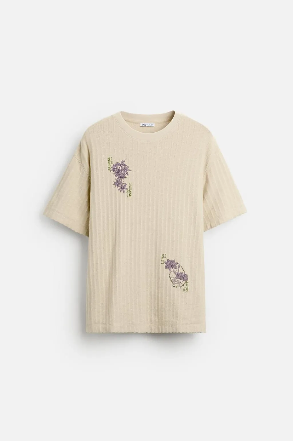 Camiseta relaxed fit. Cuello redondo y manga corta. Bordados combinados a contraste en delantero y espalda.